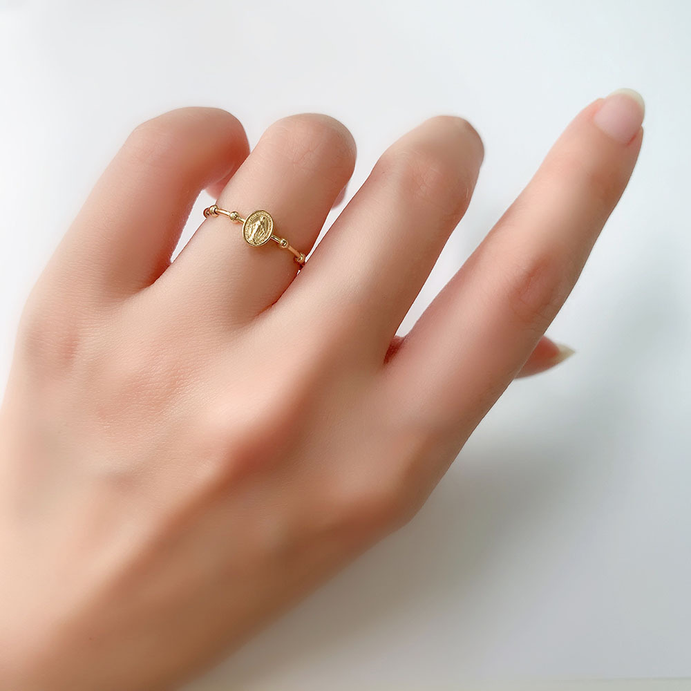 不思議のメダイの18金リングです。 K18 750刻印入り、品質保証書付きで安心です! |