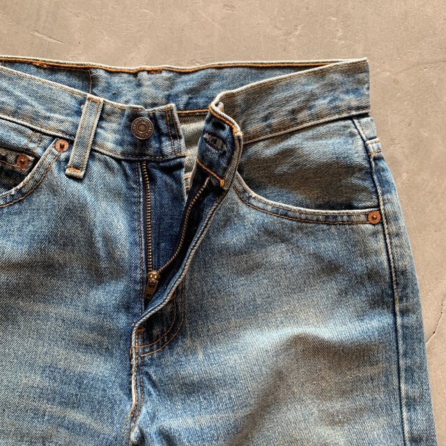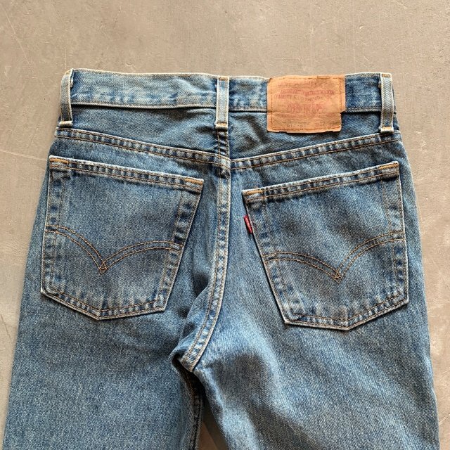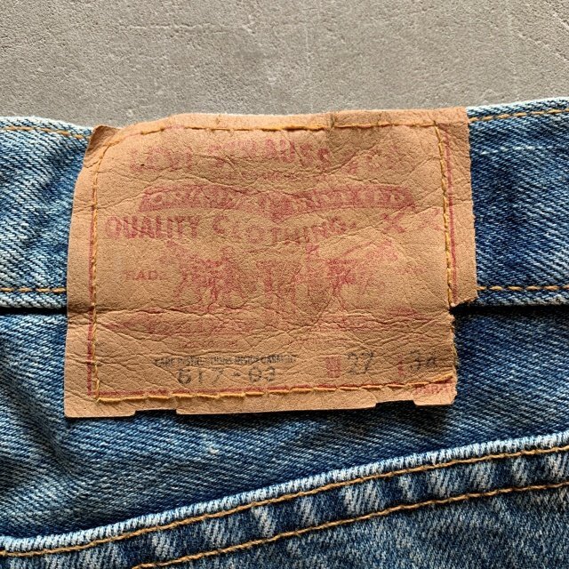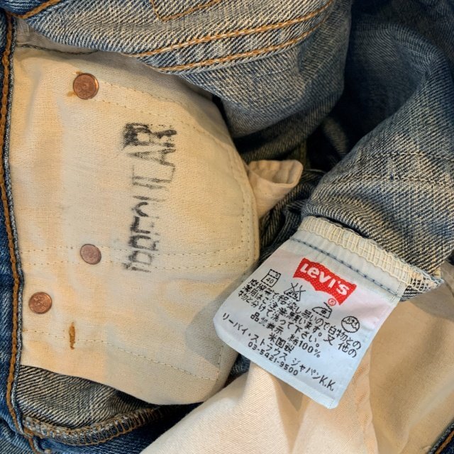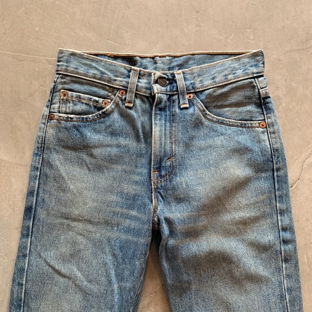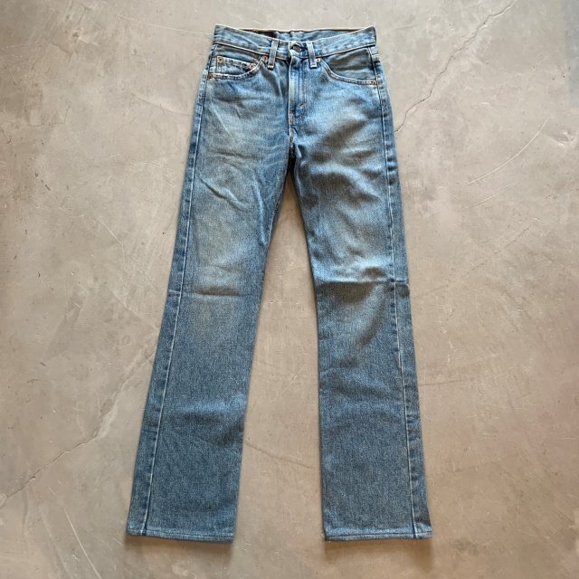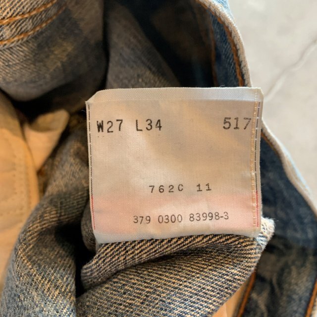 ★商品状態★ ・着用感があり、全体的な色落ち、裾直しされております。 ・古着慣れされている方でしたら問題なく着用していただける程度かと思います。 ・米国製 ★素材★ COTTON 100% デニム ★配色★ 薄い青系 ★サイズ表記★ W27 ・実寸を参考にして下さい。 ★実寸サイズ★ ウエスト 35㎝ 股下 80㎝ 股上 27㎝ 腿幅 27㎝ 裾幅 20.5㎝ ・平置きにての採寸となります。 ・若干の誤差はご了承ください。 | ||||