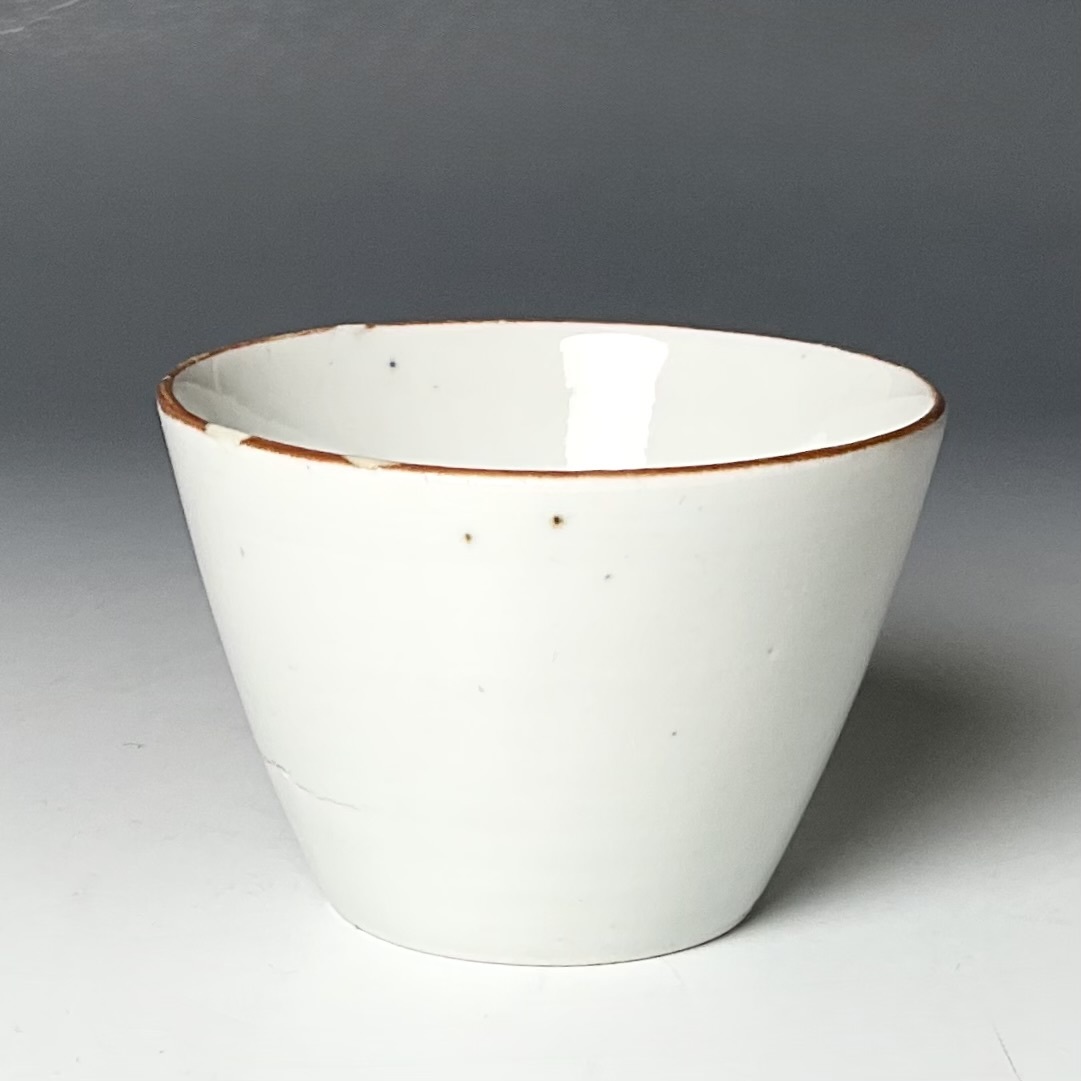 古伊万里:柿右衛門白磁元禄享保期蕎麦猪口中振紅縁完品③