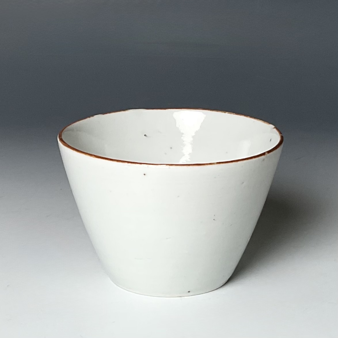 (翔)古伊万里 白磁 柿右衛門白磁 江戸中期 元禄享保期 蕎麦猪口 中振 紅縁 完品 ③ 1700-1730年代前後