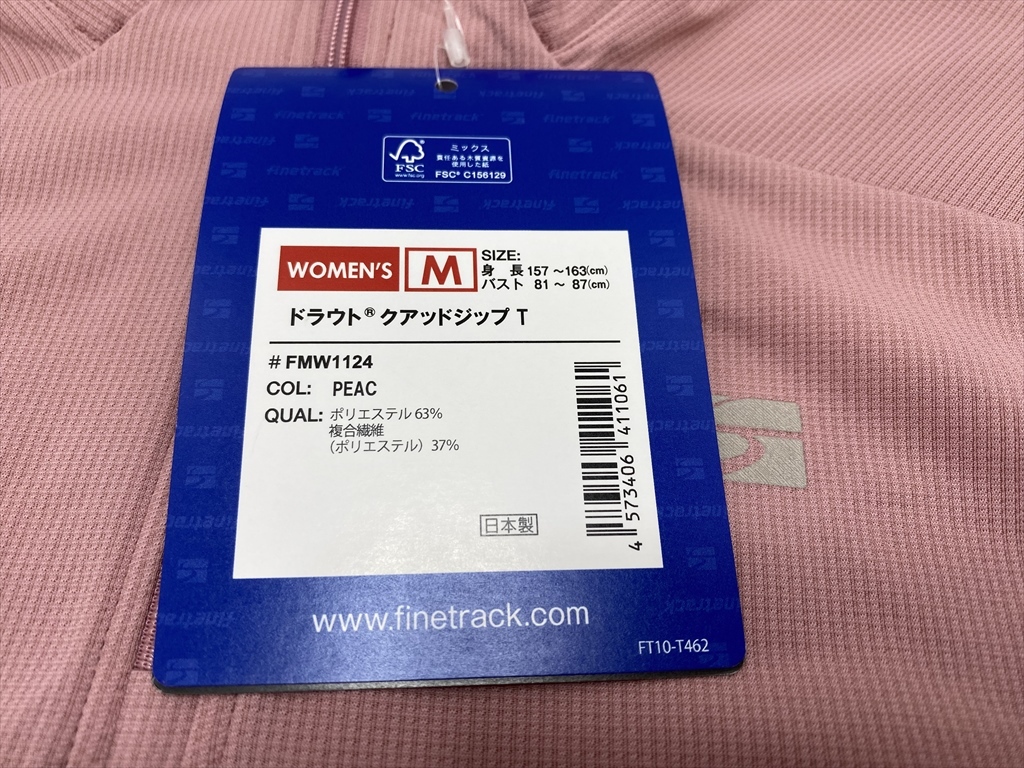 下松)finetrack ファイントラック ドラウトクアッド ジップT ピーチ WOMEN'S Mサイズ 半袖シャツ 展示品 ◆★J250621R06A NF21A
