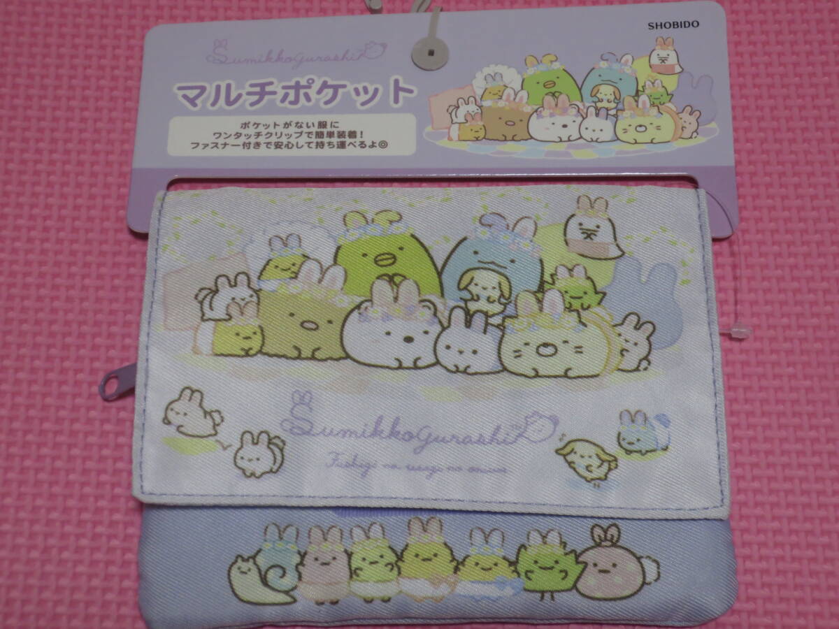 新品 すみっコぐらし ファスナー付マルチポケット クリップ付移動ポケットポーチ ハンカチティッシュマスクケース うさぎのおにわ 送料無料