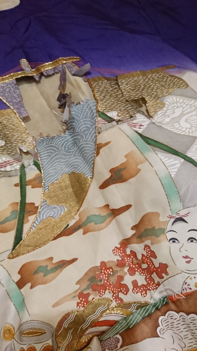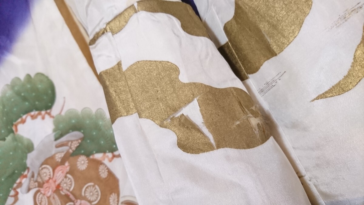 着物地のホワイトベージュカラーの部分に変色(写真10)あり★