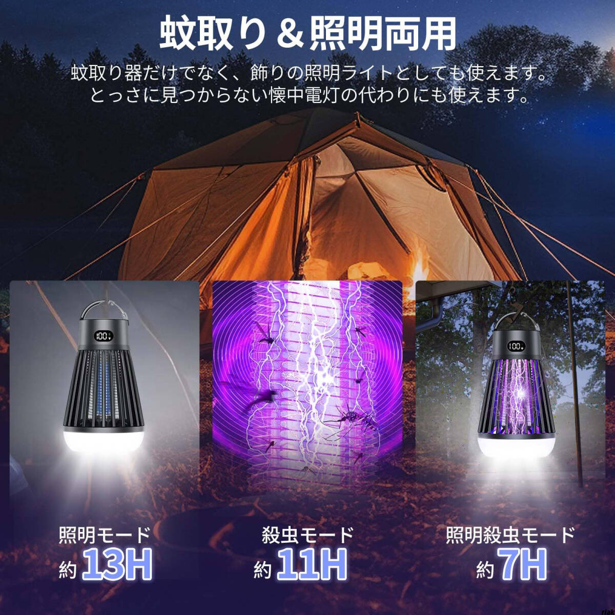 動作モード:照明モード・殺虫モード・両用モードの3段階切替