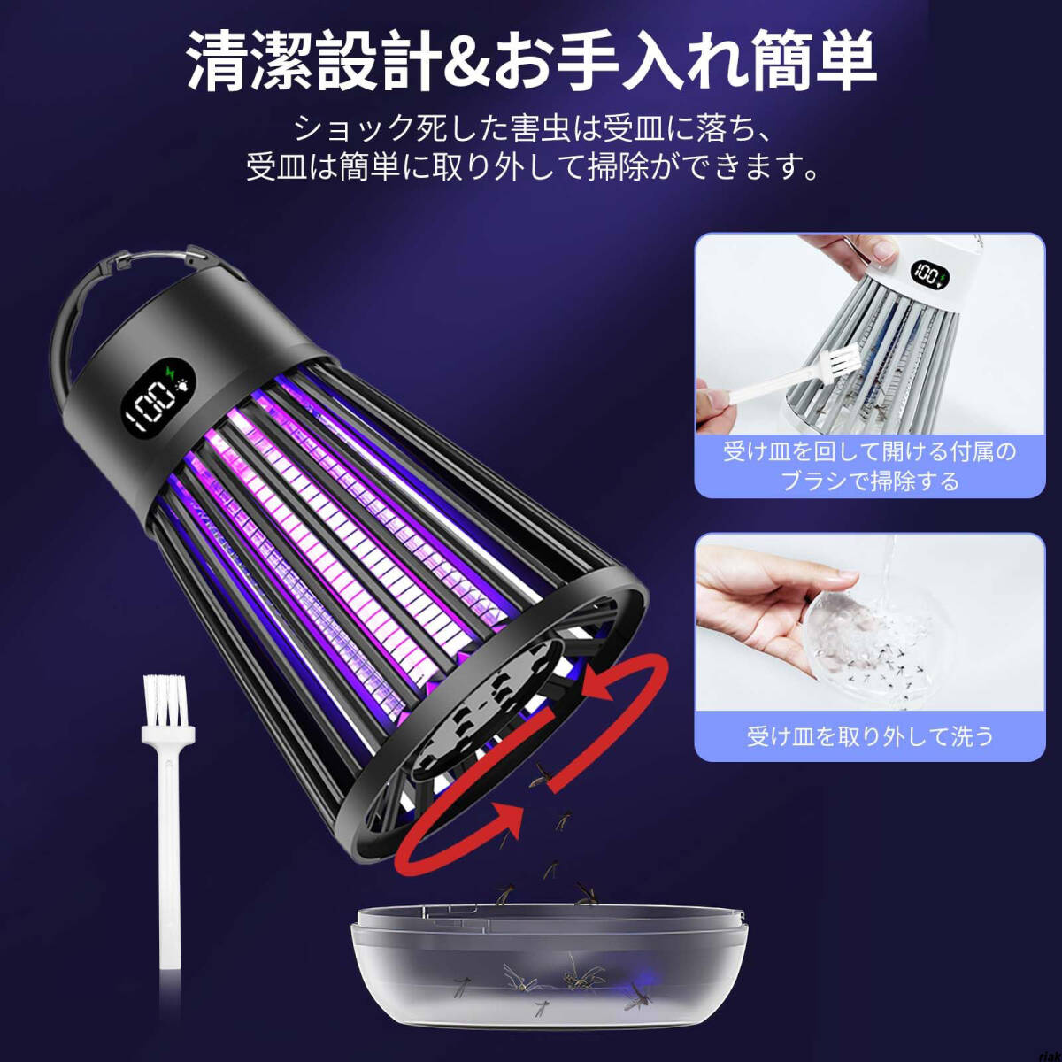 360°全方向から虫を強力に誘引し、電撃で瞬時に駆除する高性能殺虫器です。