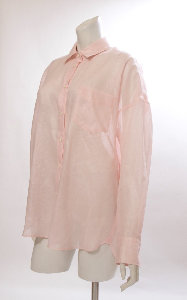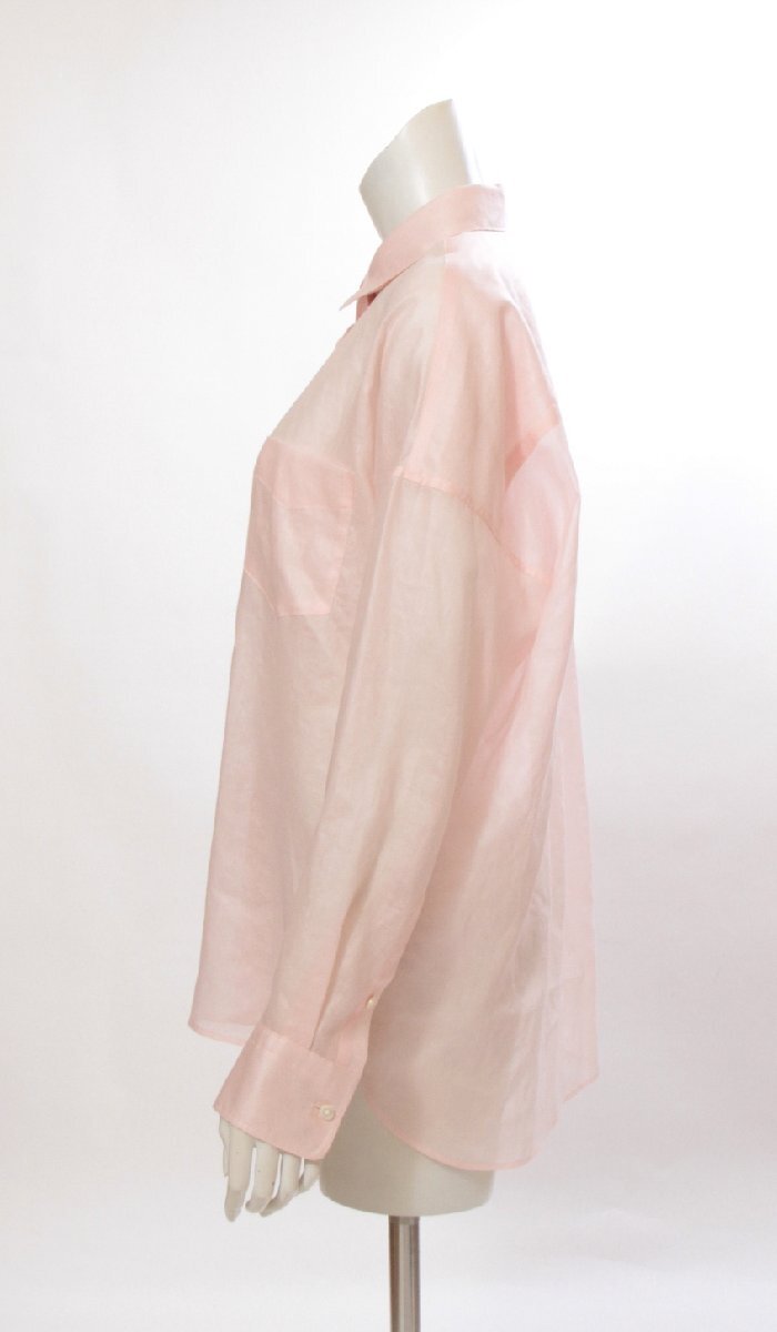 サイズ:F 身幅:59 着丈:69 76(後ろ)肩幅:66 袖丈:47 単位㎝(平置き採寸) カラー:ピンク 素材:ポリエステル100% 参考価格:約25,300円 コンディション:S ベーシックなシャツデザインにサテンのような光沢を加えモダンで新鮮な印象に。上品なシアー感があり夏の羽織りとしても大活躍。ややゆったりとしたシルエットでリラックスしたフィット感。 |