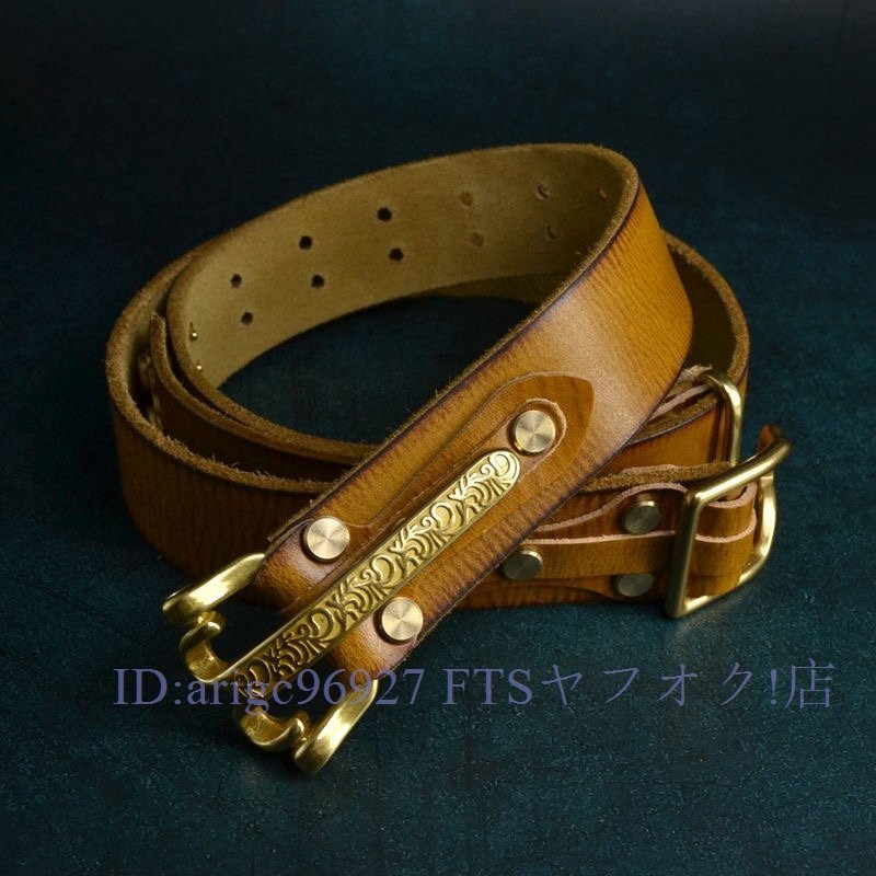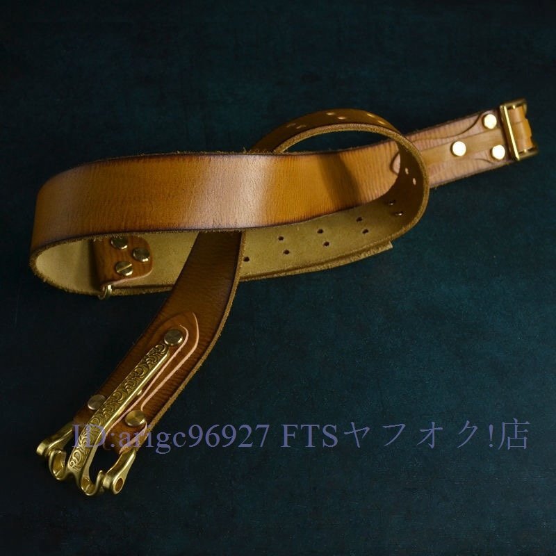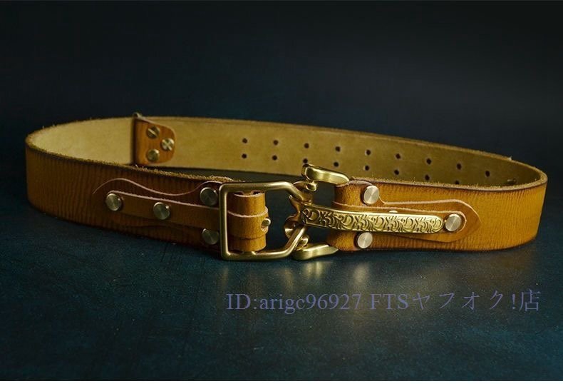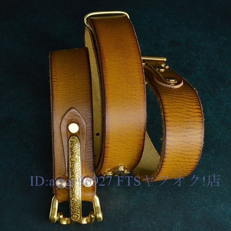 新品★人気/ハンドメイド レトロ本革ベルト ルーズエッジ加工 真鍮バックル 調節可能(95-125cm) メンズ インダストリアルスタイル