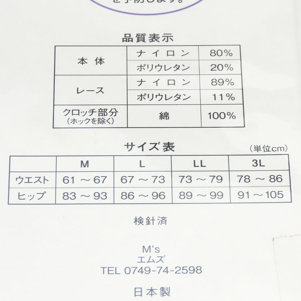 | 仕様 | 詳細備考:Mサイズ:ウエスト61~67cm/ヒップ83~93cm | 付属品 | - |