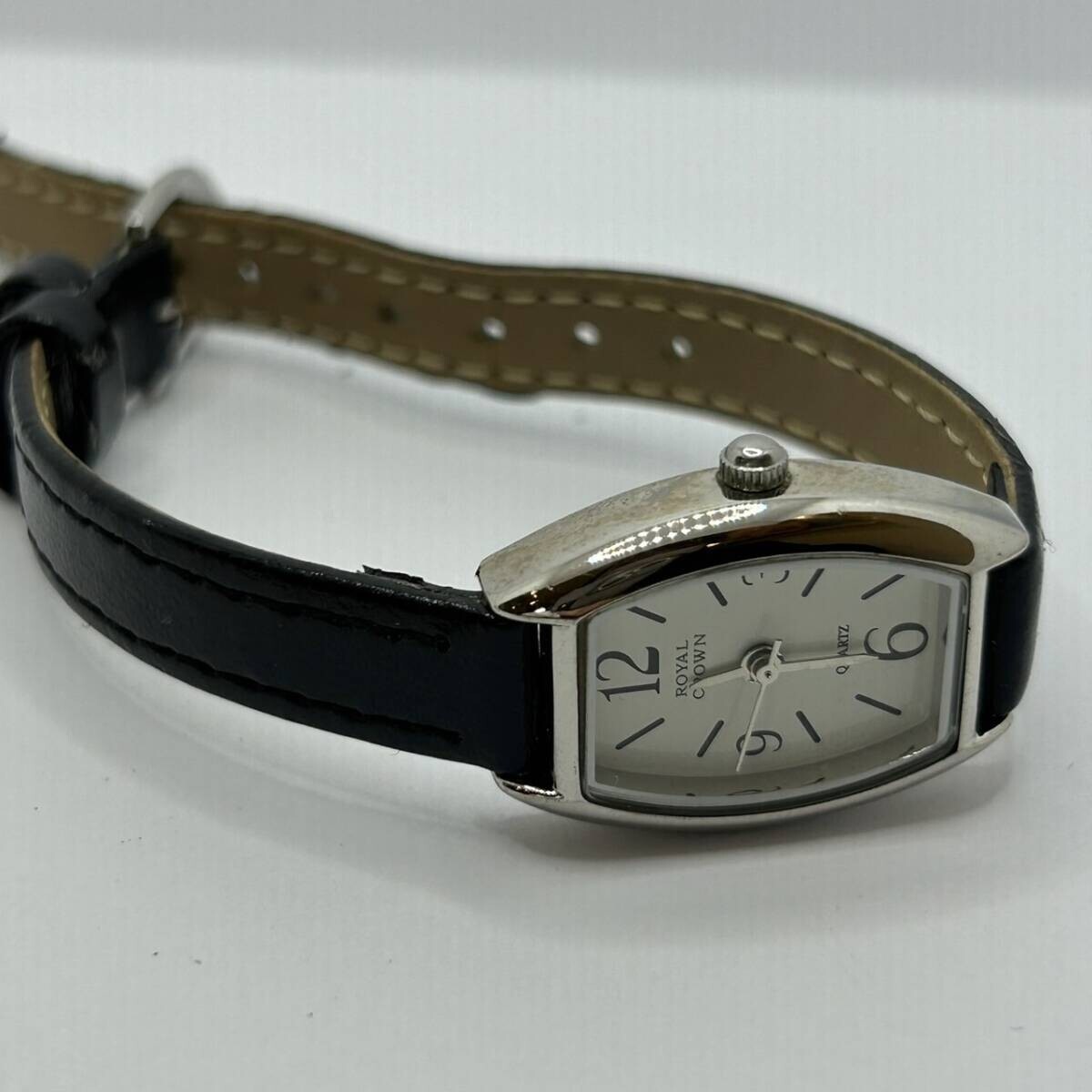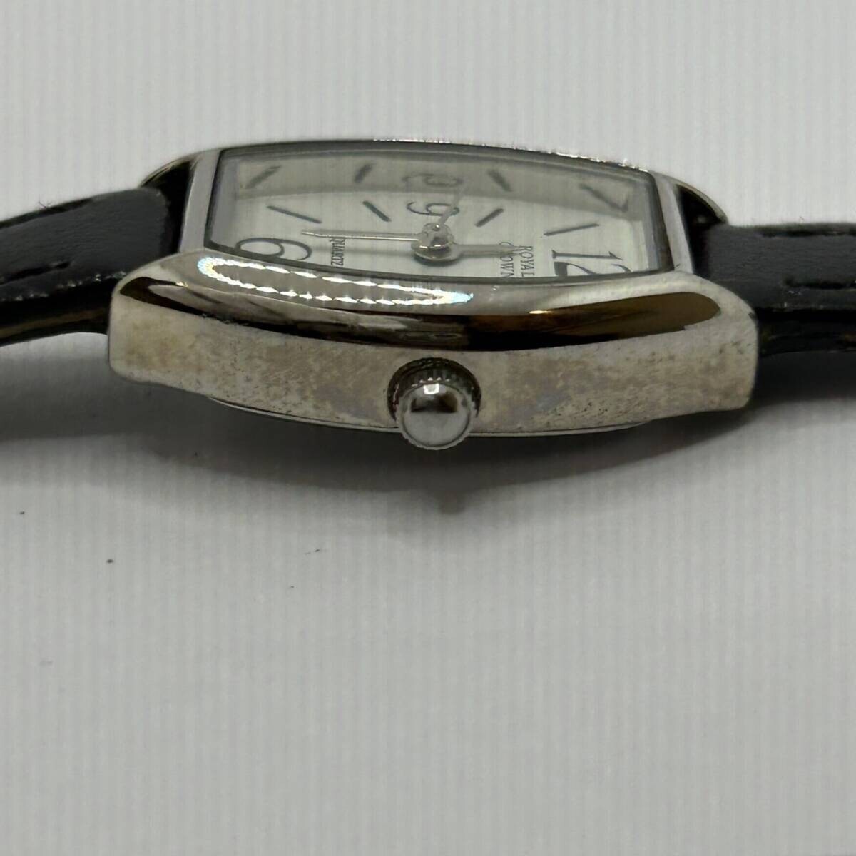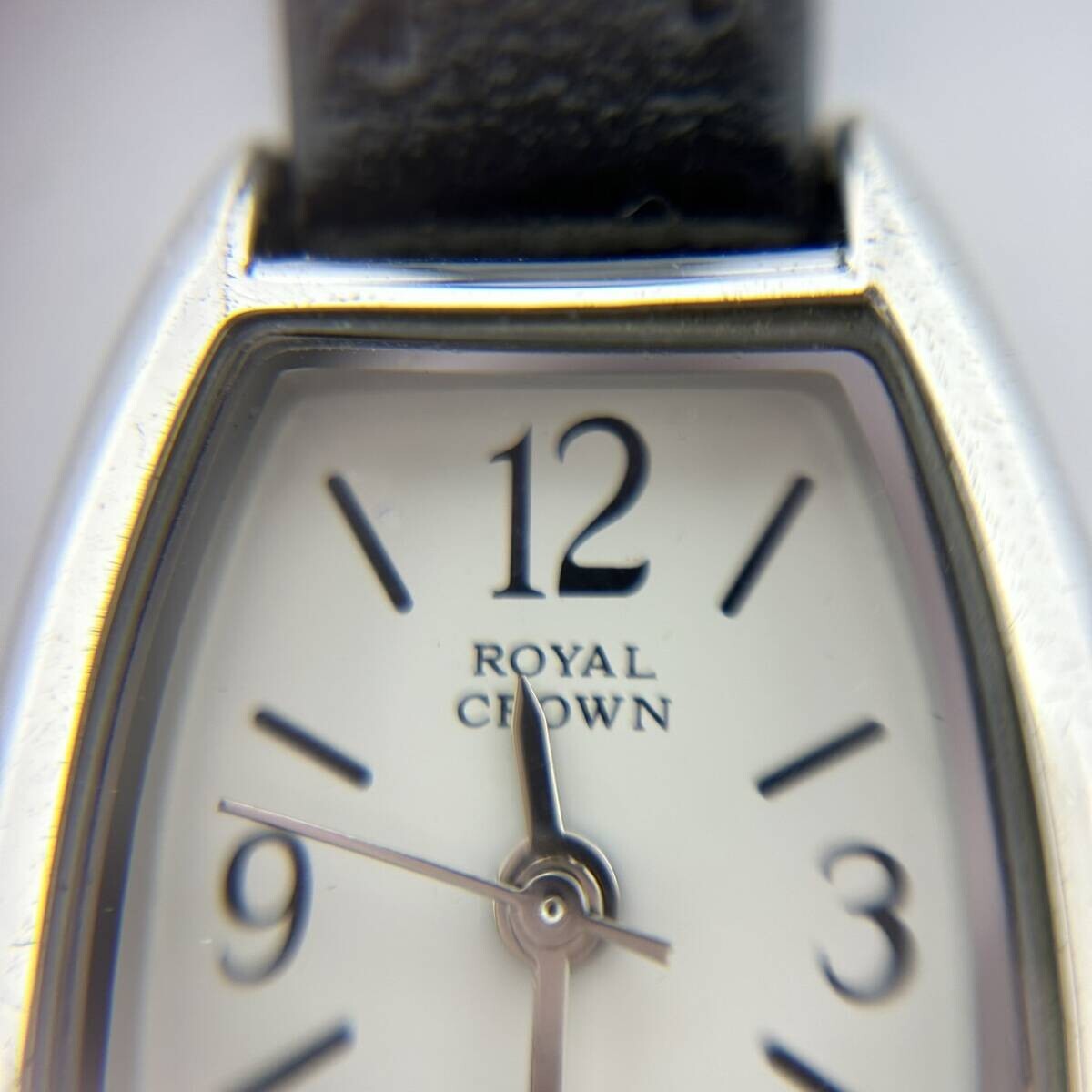 A)電池交換済み可動品★ROYAL CROWN/ロイヤルクラウン 腕時計 白文字盤 レザーベルト レトロ シルバー クオーツ メンズ レディース AE3006