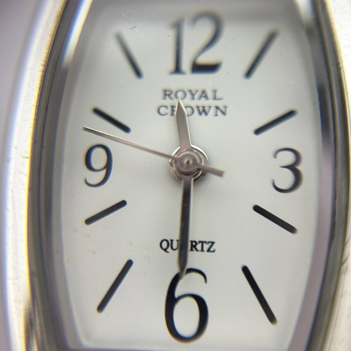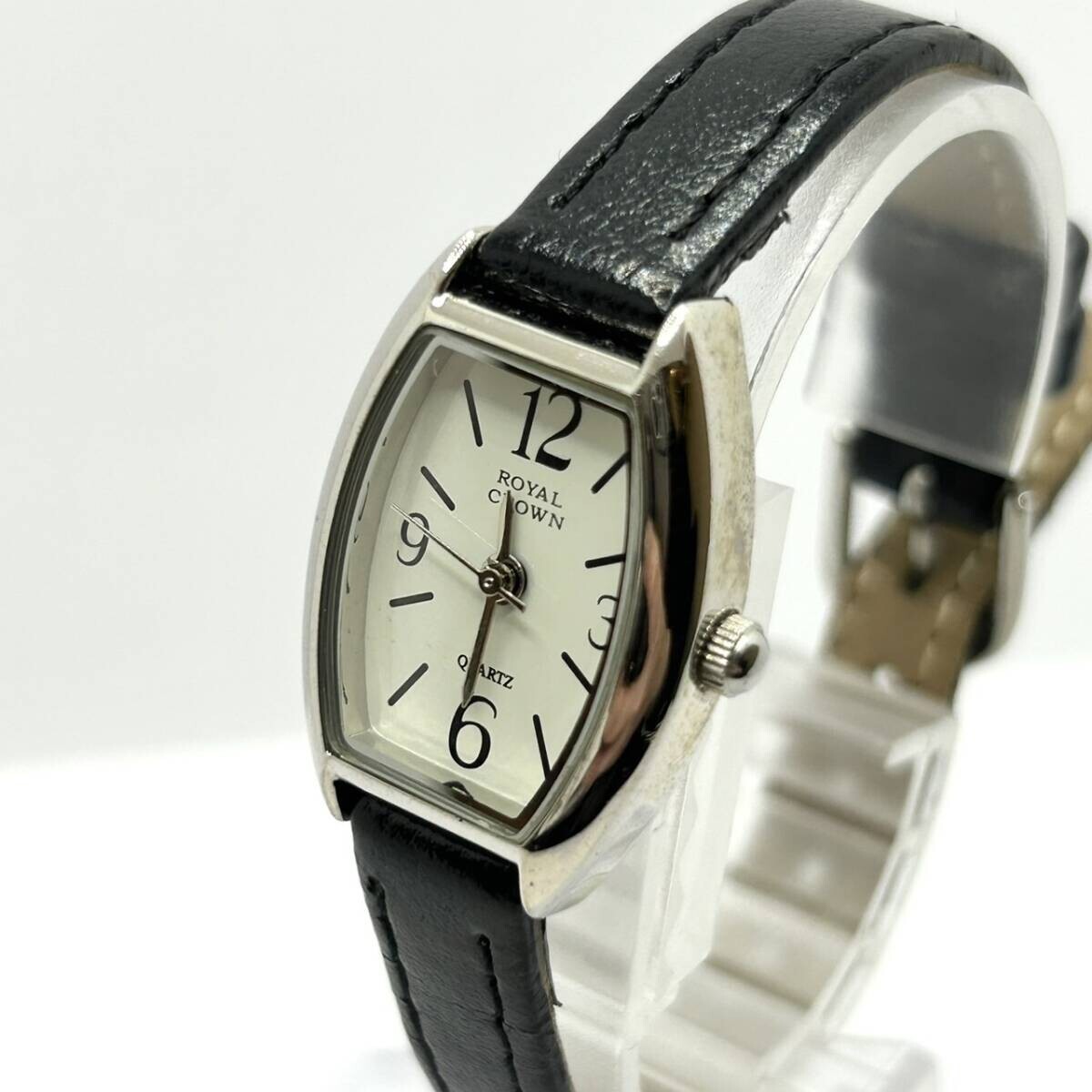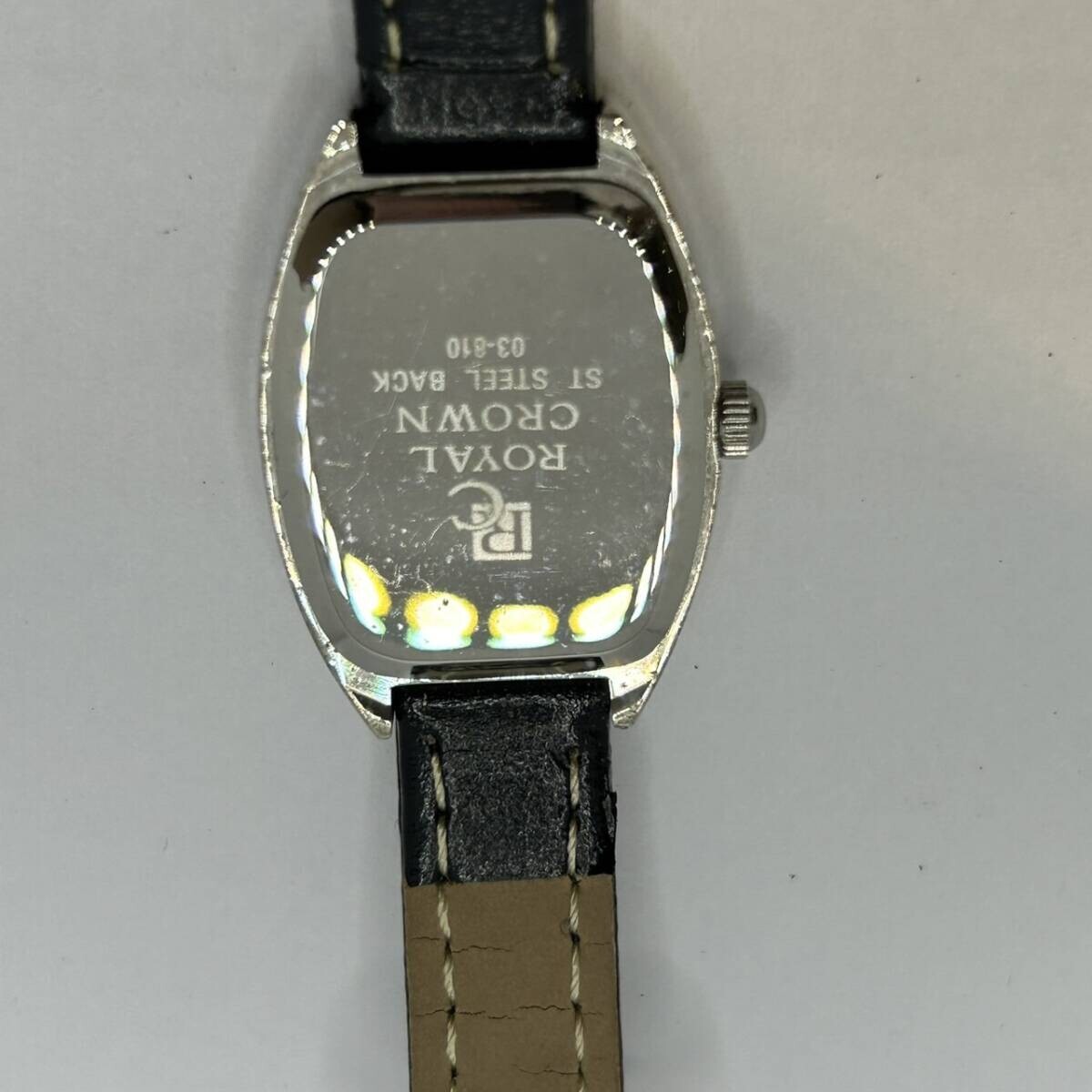 A)電池交換済み可動品★ROYAL CROWN/ロイヤルクラウン 腕時計 白文字盤 レザーベルト レトロ シルバー クオーツ メンズ レディース AE3006