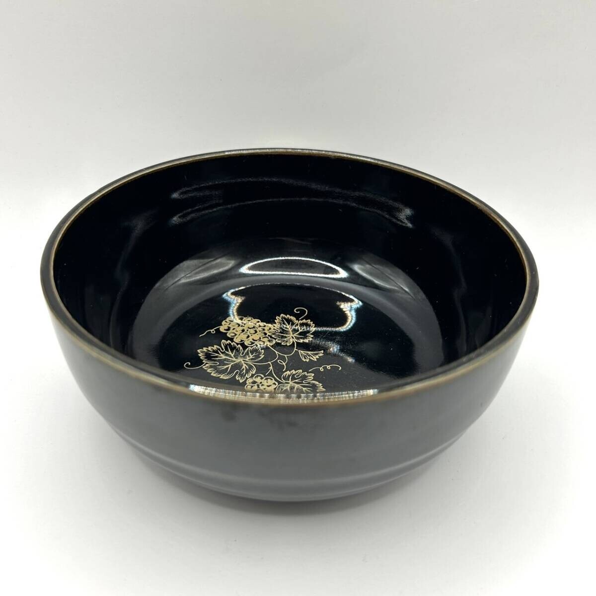 A)和食器 どんぶり鉢 深鉢 ぶどう柄 ぶどう 模様 和風 日本式 日本伝統 汁椀 昭和レトロ そば うどん 皿 和風どんぶり 丼 ブラック AE2104