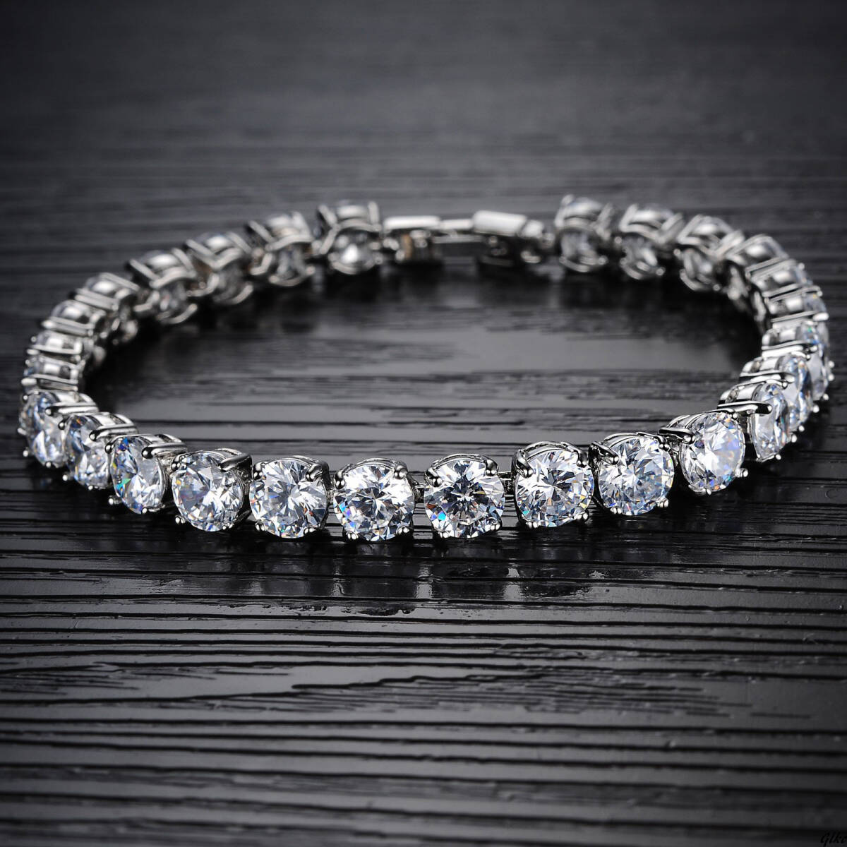 シルバー製テニスブレスレットは、上品さと普遍的な美しさを兼ね備えたデザインです。