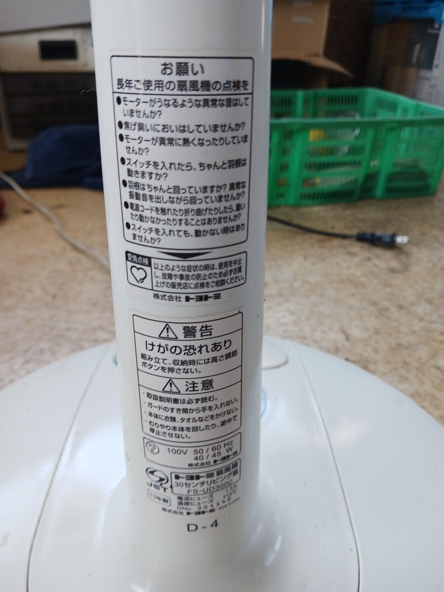 トヨトミ 30cm リビング扇風機 TOYOTOMI FS-UD300C 扇風機となります。