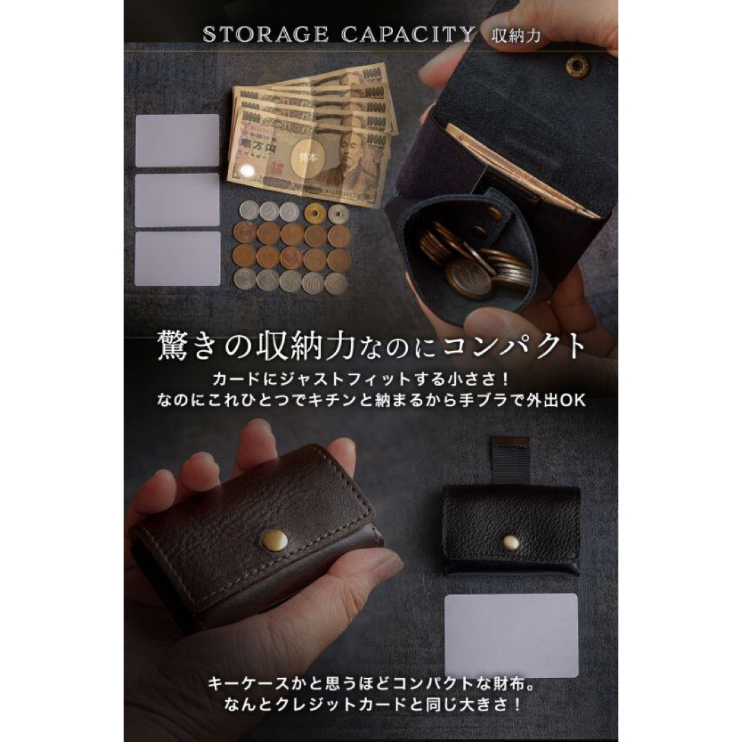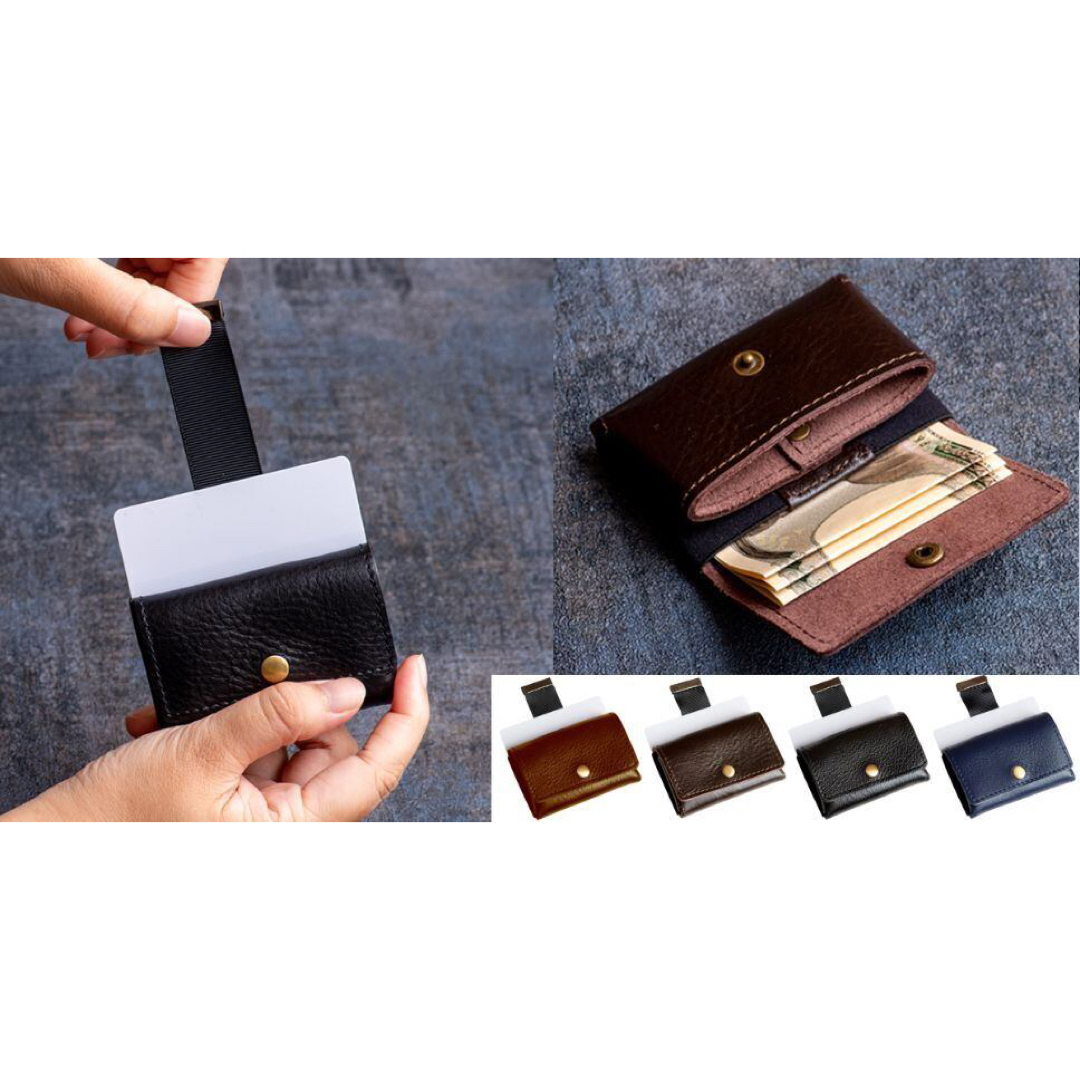 \紐を引いてカードがポップアップ!癖になる本革ミニ財布/