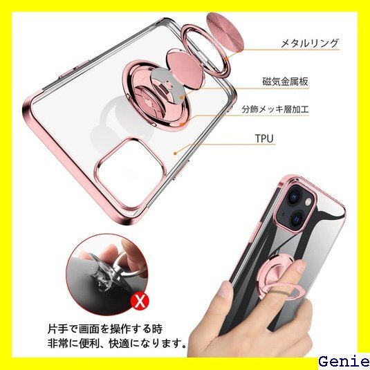 iPhone 14 用 ケース リング クリア iph 6.1インチ アイフォン 14 ケース ローズゴールド 28