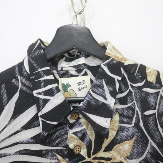 r11 90sビンテージ MESPORT レーヨン 半袖 総柄 アロハシャツ■1990年代製 表記XLサイズ アメカジ ストリート ボタニカル ハワイアン 80s