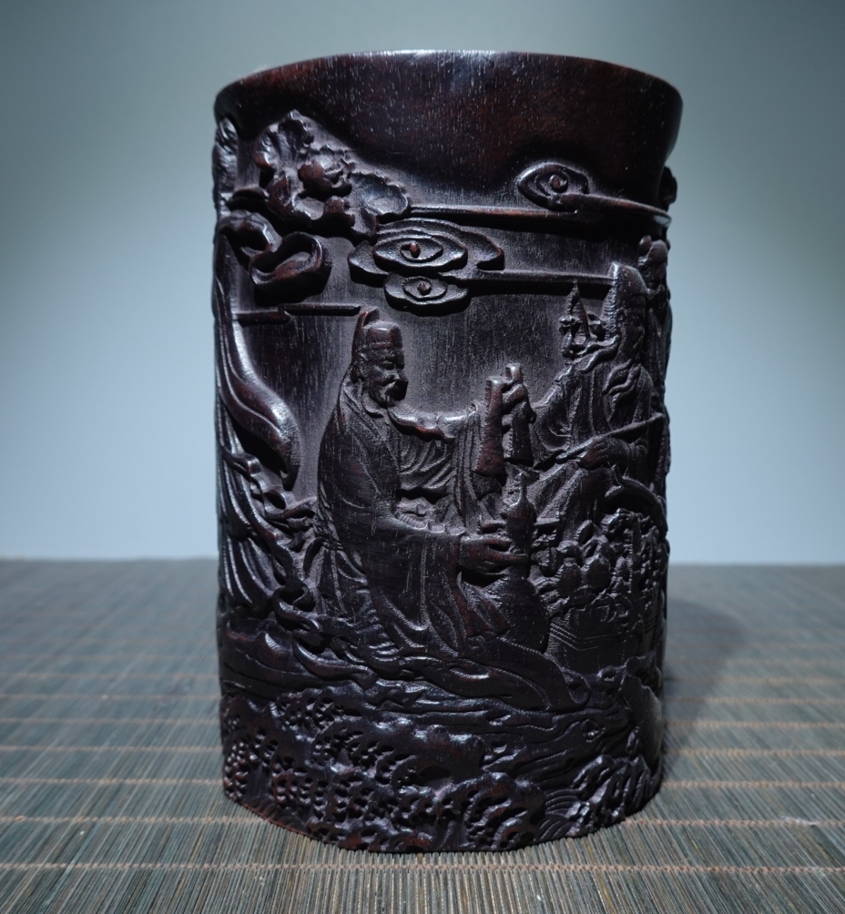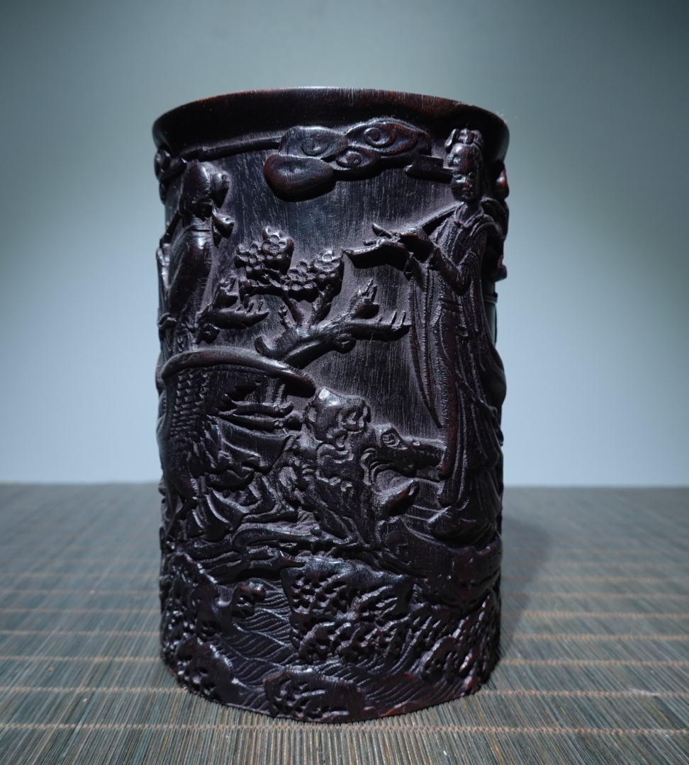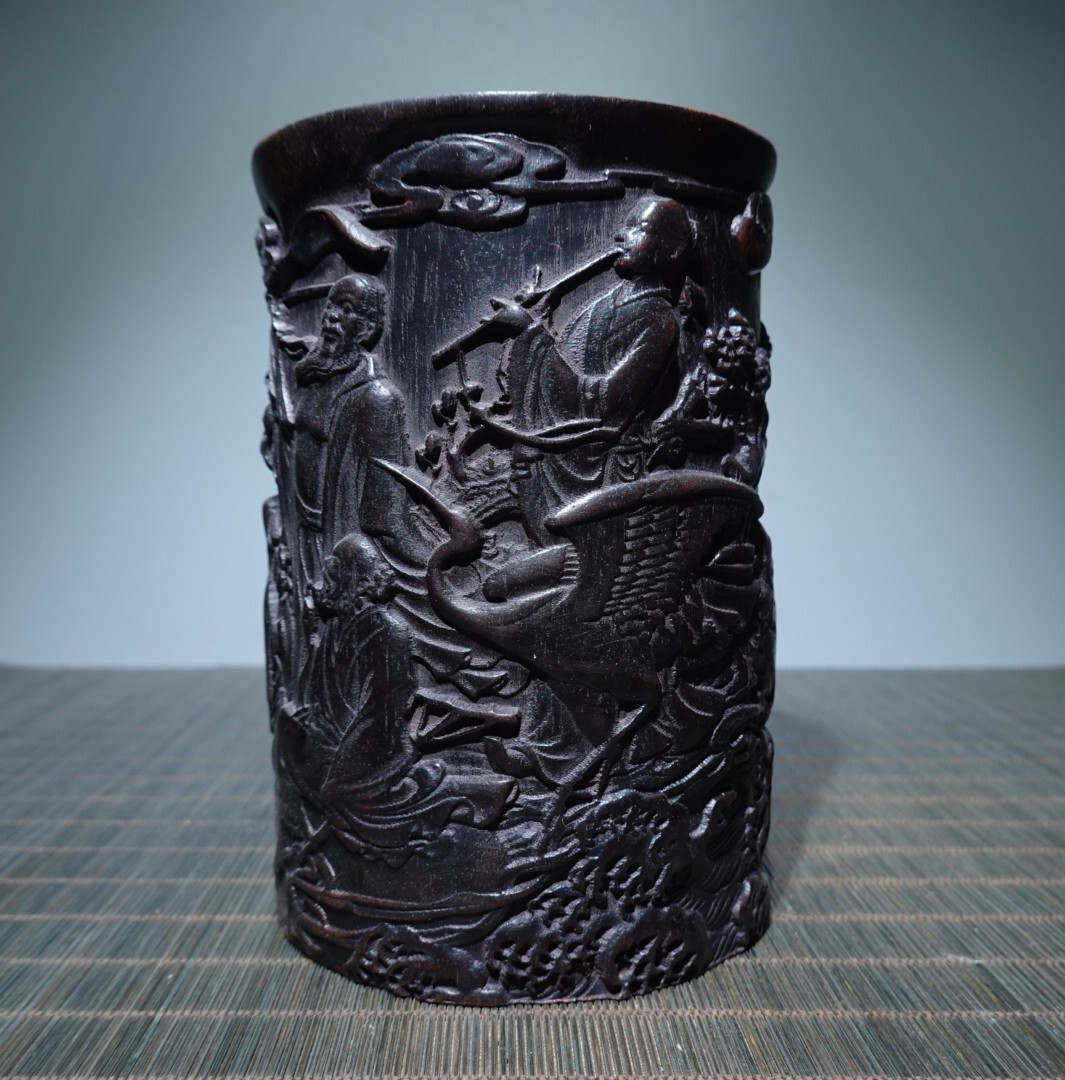 *珍品旧蔵* 清 黑檀木 筆立て 筆道具 文房具 木製 極細工 唐物 中国古玩 骨董品 古美味 H46