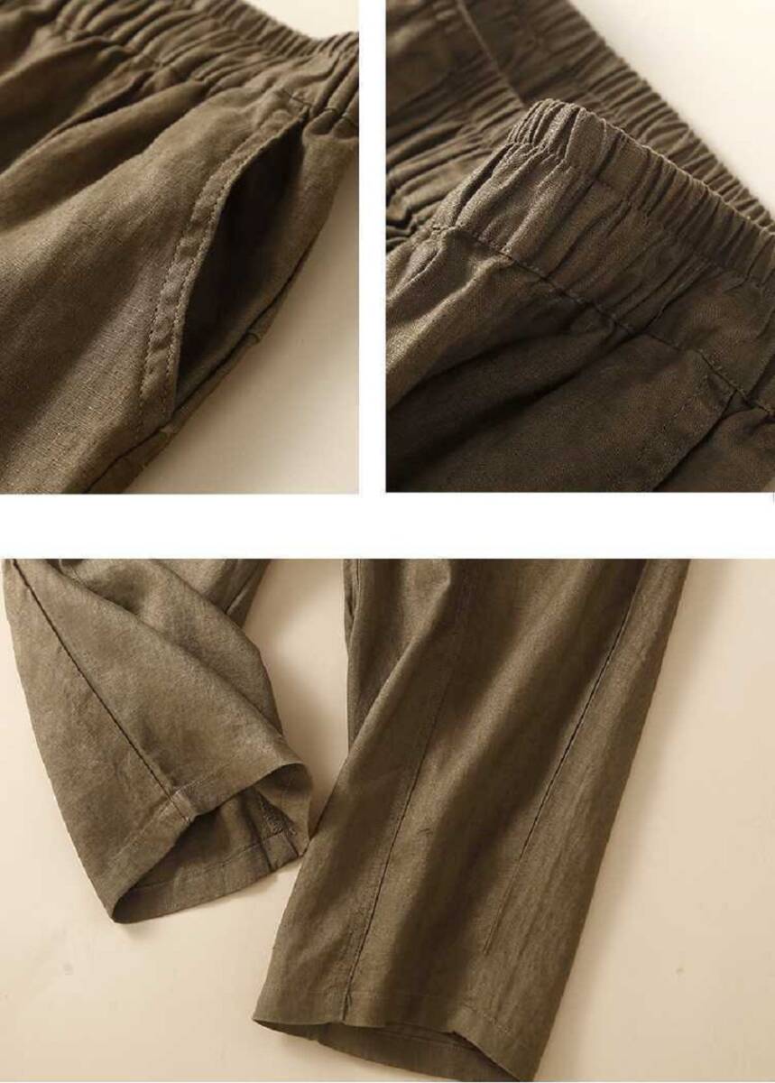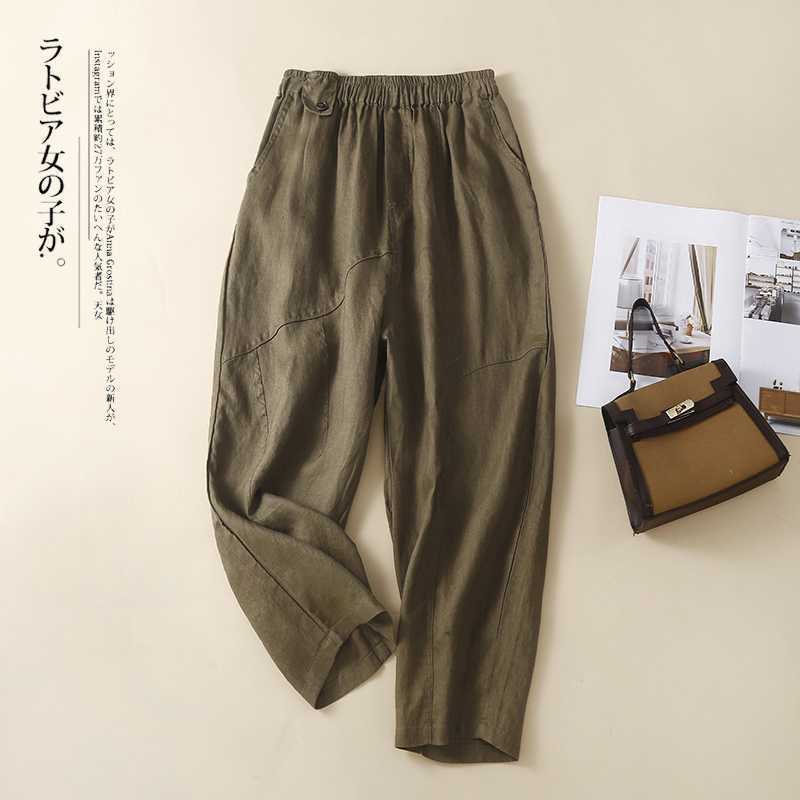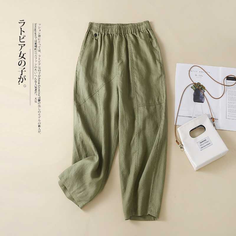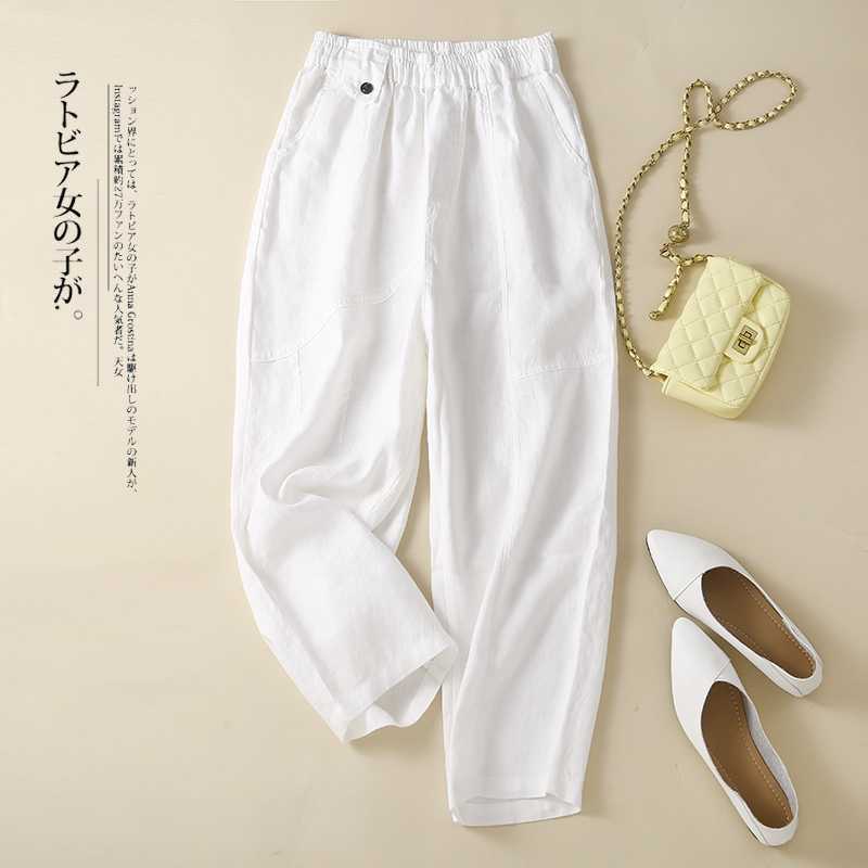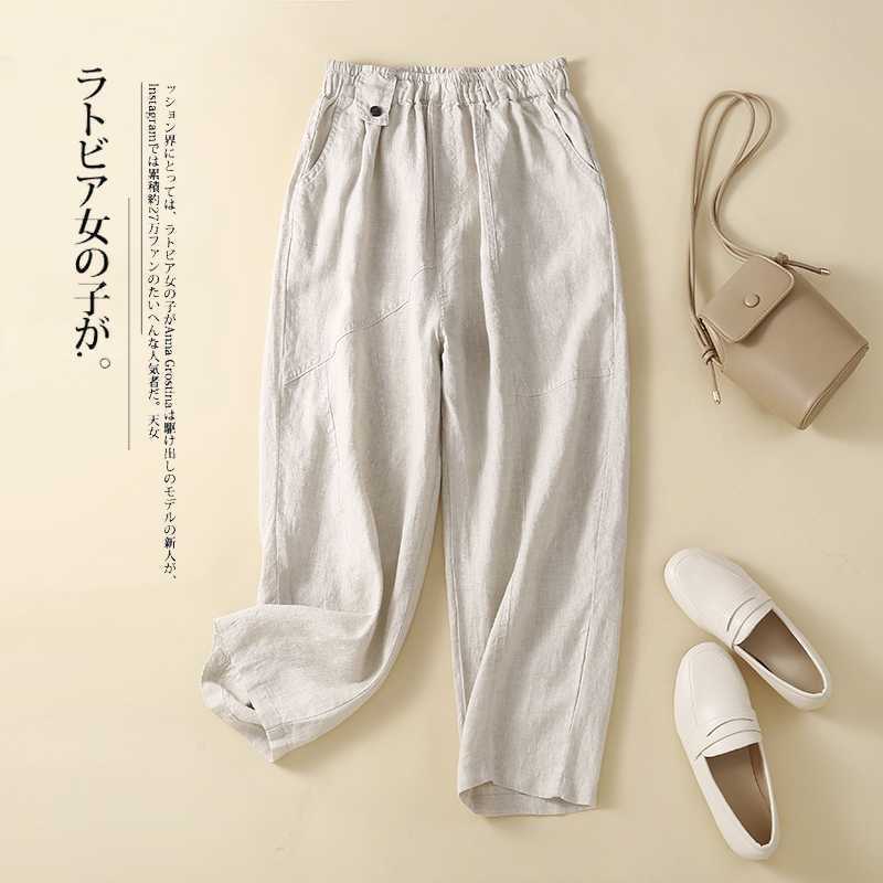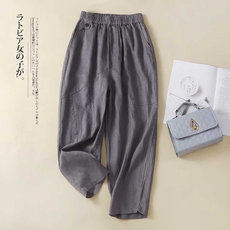 「同梱1万円送料無料」カジュアル ゆったり ワイドパンツ綿麻レディースパンツ無地着やせ大人通勤通学ボトムスウエストゴム~グレー