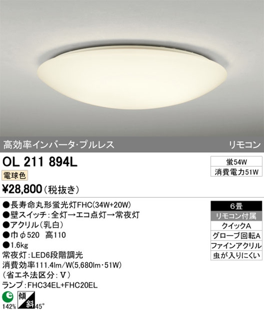 LEDシーリングライト 電球色 OL211894L