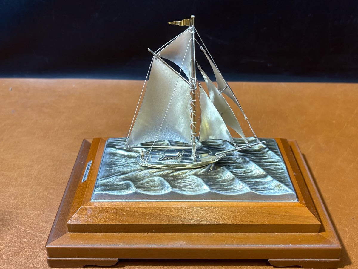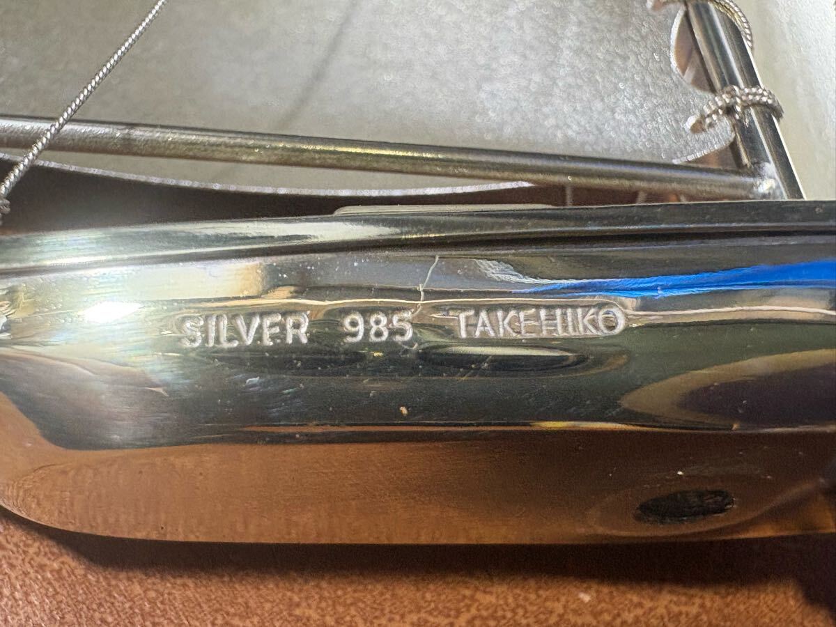 | ※専門店では無いため詳しいことはわかりかねます。 ※送料に関しては下記の発送詳細をご確認ください。※ TAKEHIKO 銀製 帆船 中身約115g (台座プレートを含む) ケース寸法 約21x13.5x22cm 帆船にSILVER985の刻印ありました。 台座プレートにはS.Pという刻印があります。 専門店ではない為詳しいことはわかりかねます。 社名が入っていたため加工で塗りつぶしてあります。 保管品となりますのでご理解いただける方のみお願いいたします。 ●付属品● 写真に写っているものが全てとなります。 |
