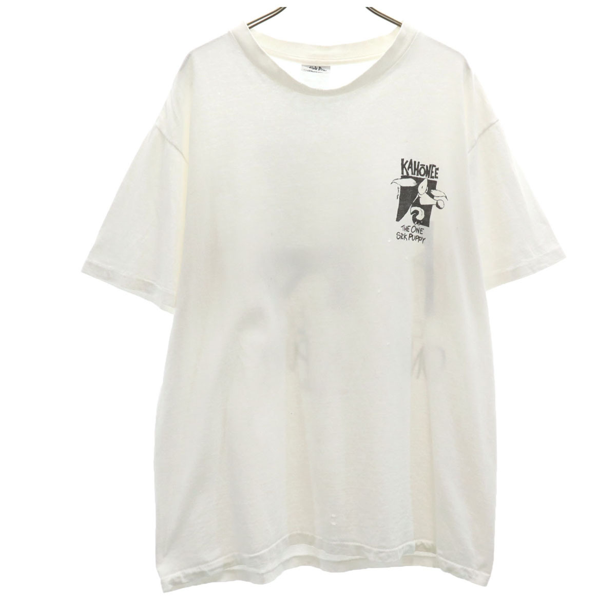 | 詳細 | 90年代のオールドのプリントTになります。プリントの薄れ、全体に破れと穴、シミ汚れあり。古着にご理解の上ご購入をお願い致します。 |