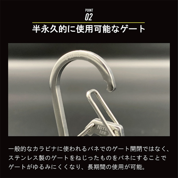 新登場【Gカラビナー#2】2段階フック【ナイトアイズ】独特なG型デザインカラビナ【ステンレス製】鍵キーホルダー【新品】NITE IZE