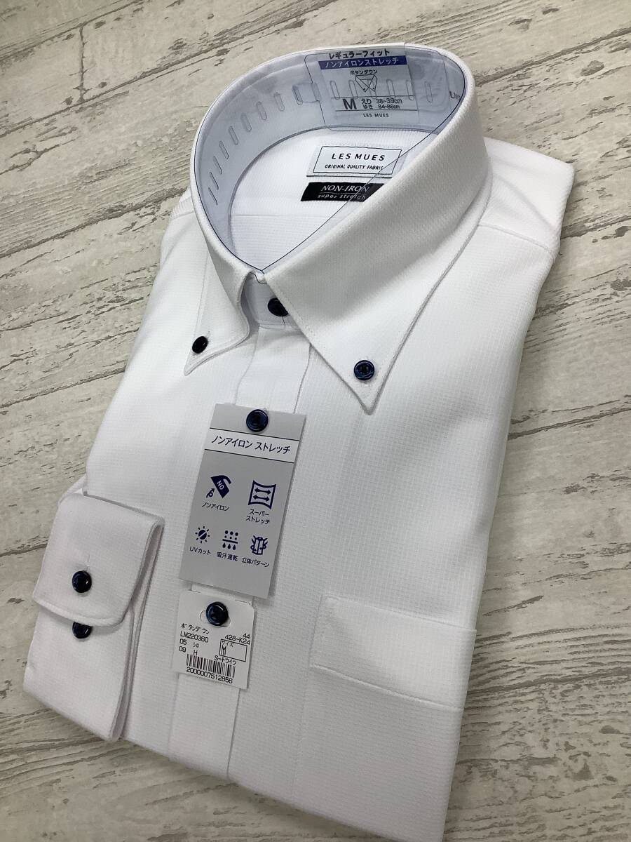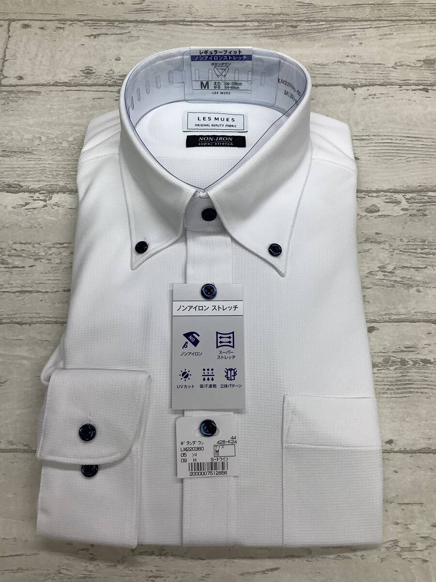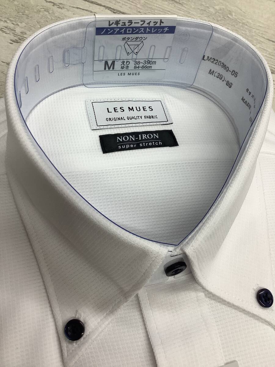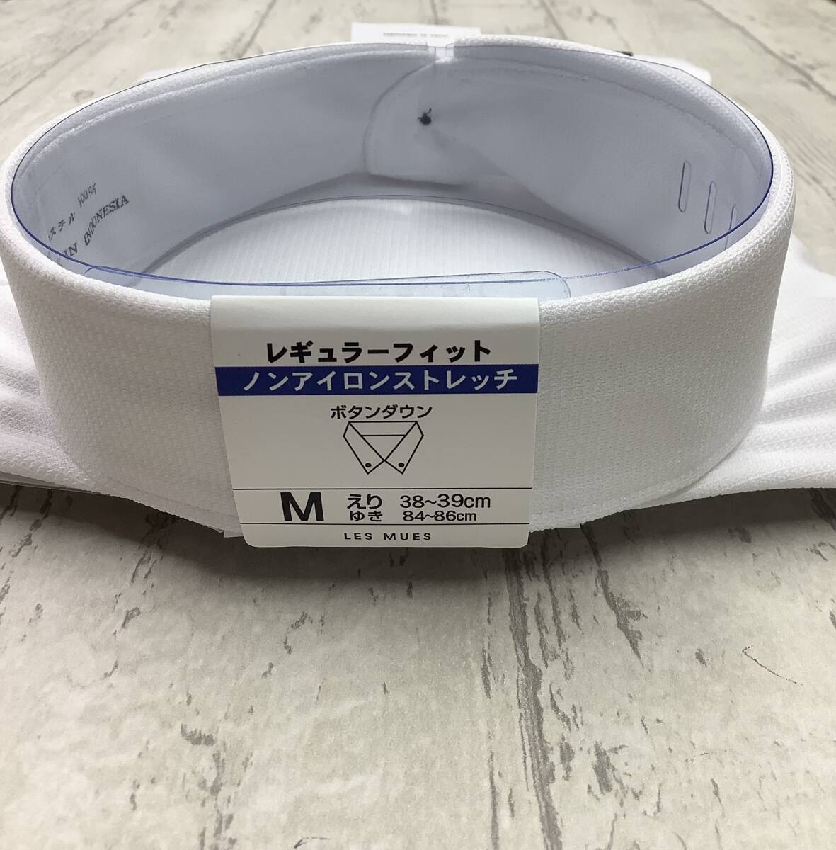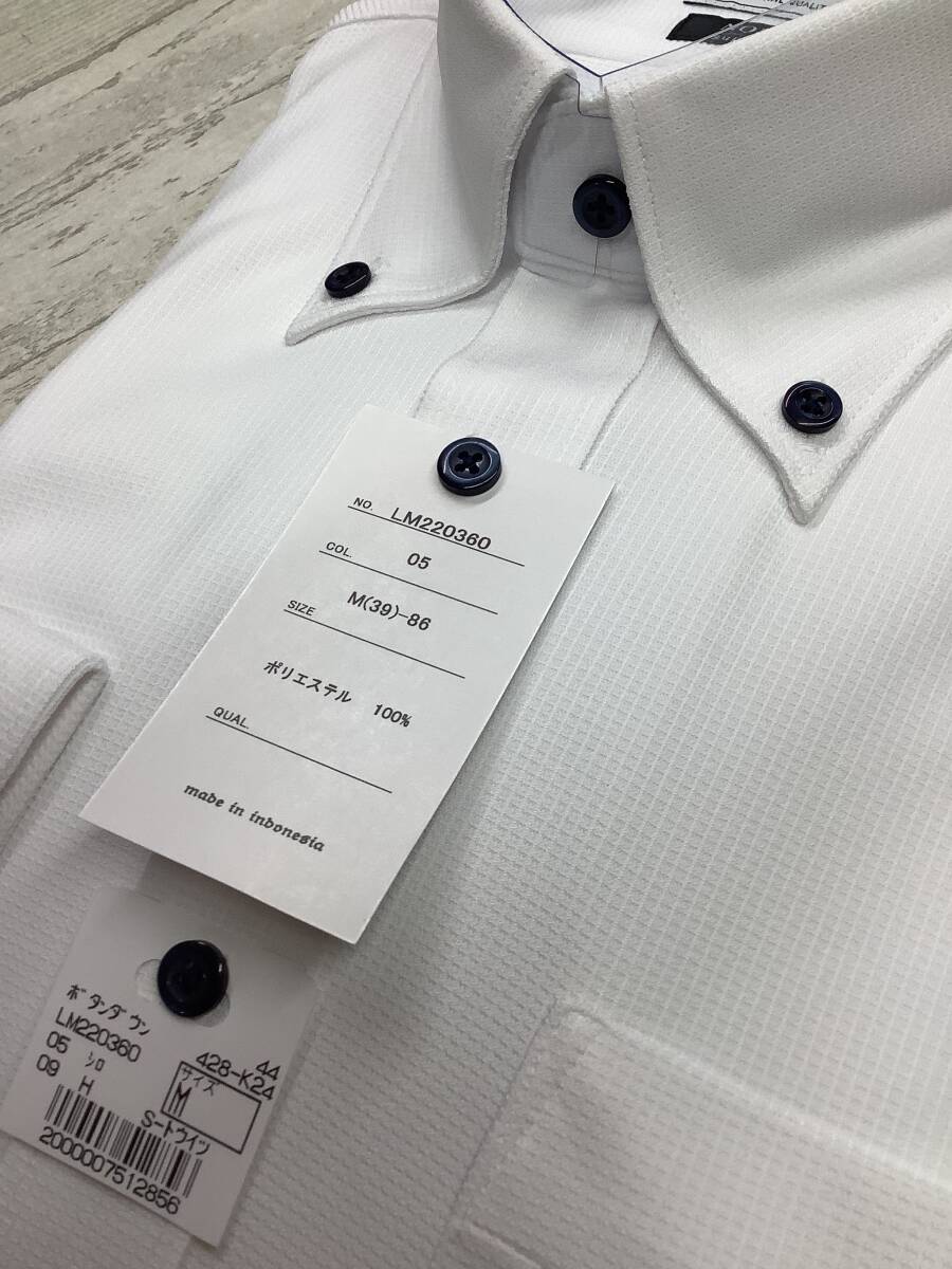 39-86長袖Mサイズ ★ボタンダウンドレスシャツ ノンアイロン ポリエステル100% スーパーストレッチ素材  ★ドビー柄 白無地