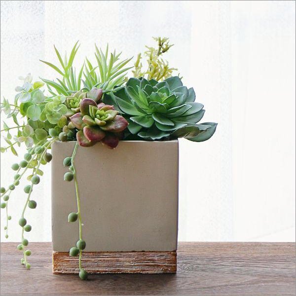 | ずっしりと重みのある バイカラーのセメントプランターは ナチュラルモダンな雰囲気が漂う 洗練されたデザイン ウッド調の加工を施した深めの受け皿で 水捌けがよくなるような工夫がされているので 根腐れ防止になり、 湿度の高い環境を嫌う 多肉植物やサボテンとも相性抜群です 幅が14cmのスクエアタイプです 商品名 : バイカラーセメントプランター スクエア 商品番号 : spc5270 全体サイズ(cm) : 幅14×奥行14×高さ15 プランター内サイズ : 幅12×奥行12×深さ12 材質 : セメント 重量 : 1.8kg 生産国 : 中国 ※底穴が開いています ※ペイント斑や小傷、小さな欠け、汚れなどをわざとつけてアンティークを模した商品です ※素材の特性上、セメントの破片や、塊、斑、凹凸、ガタつき等が見られます ※ディスプレイによる色の違いはご了承下さい |