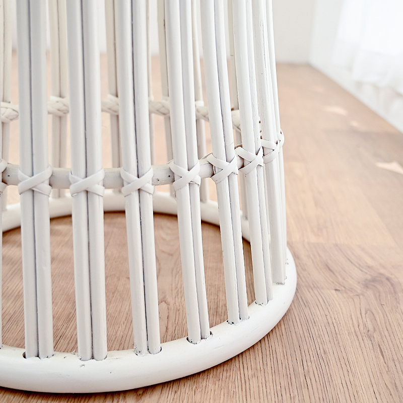 シンプルだけどかわいらしさもあるホワイト色のラタンサイドテーブル。