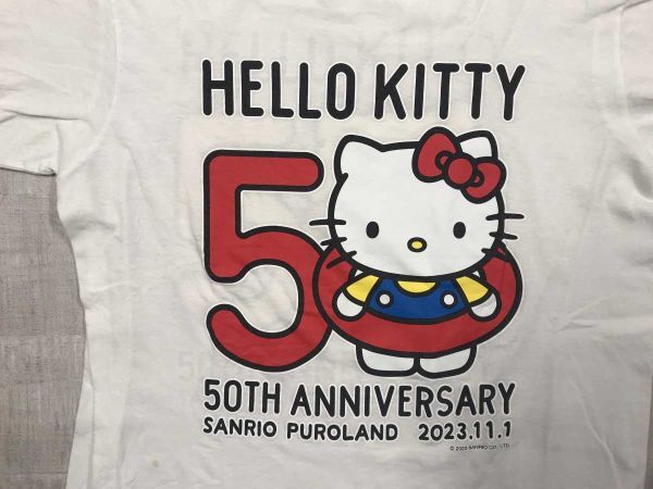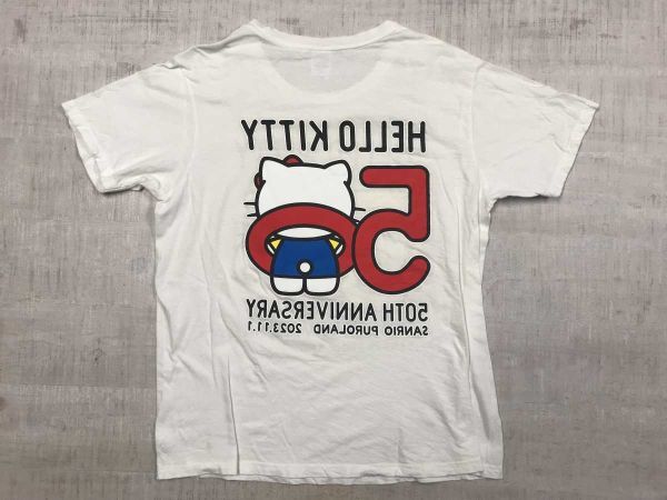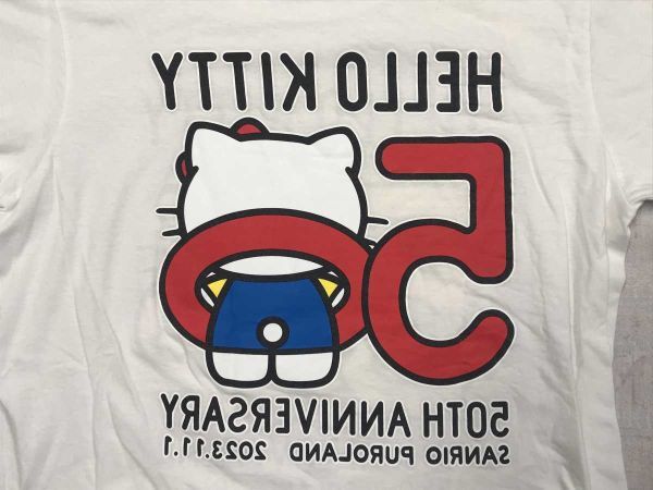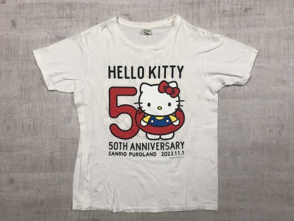 ハローキティ HELLO KITTY サンリオピューロランド SANRIO 50周年 2023 キャラクター イラスト 半袖Tシャツ レディース コットン100% L 白 です。