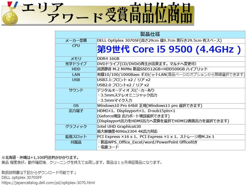 | 送 料 | ◆本州・四国・九州内各都府県は送料無料! 北海道/沖縄は送料1100円 ※ パーツ等小型商品は出荷から到着まで3~4日程度かかります。 ・PC・モニタ等の配送は、日本郵便 ゆうパック便でお届けいたします。 ・パーツ等はポスト投函便にてお送りします。 ■来訪での引取も可能です。 |