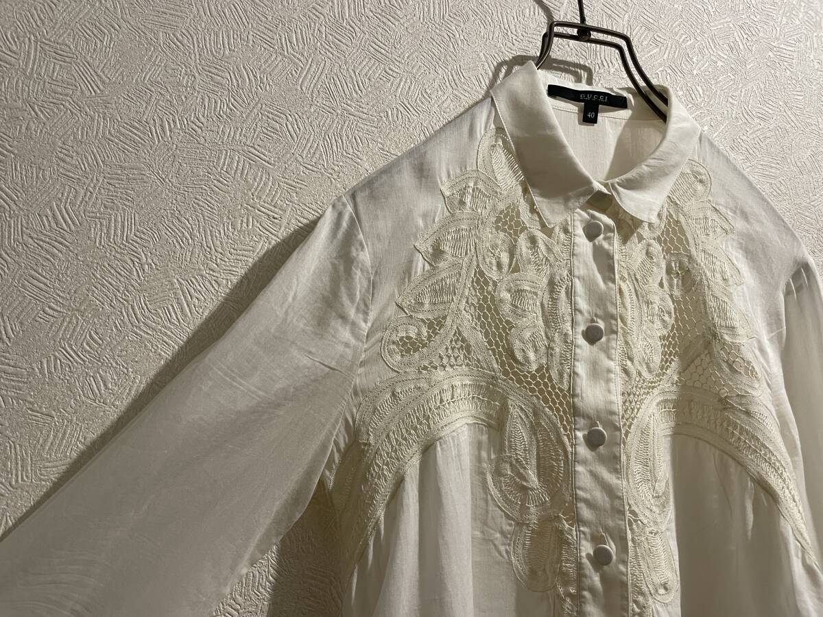 ◯ イタリア製 GUCCI プルオーバー レース ブラウス / グッチ ローン シャツ ブザム アールヌーヴォー ホワイト 白 40 Ladies #Sirchive
