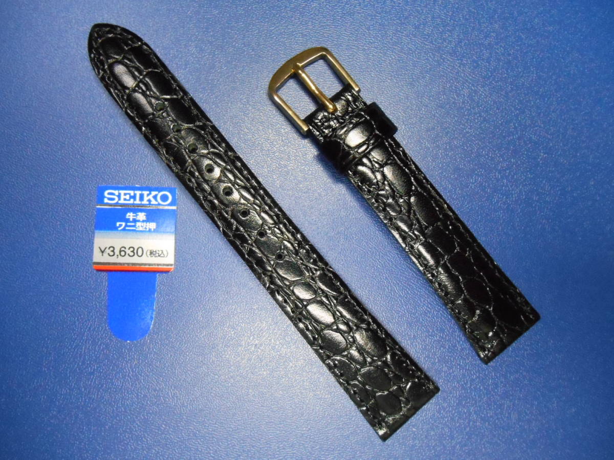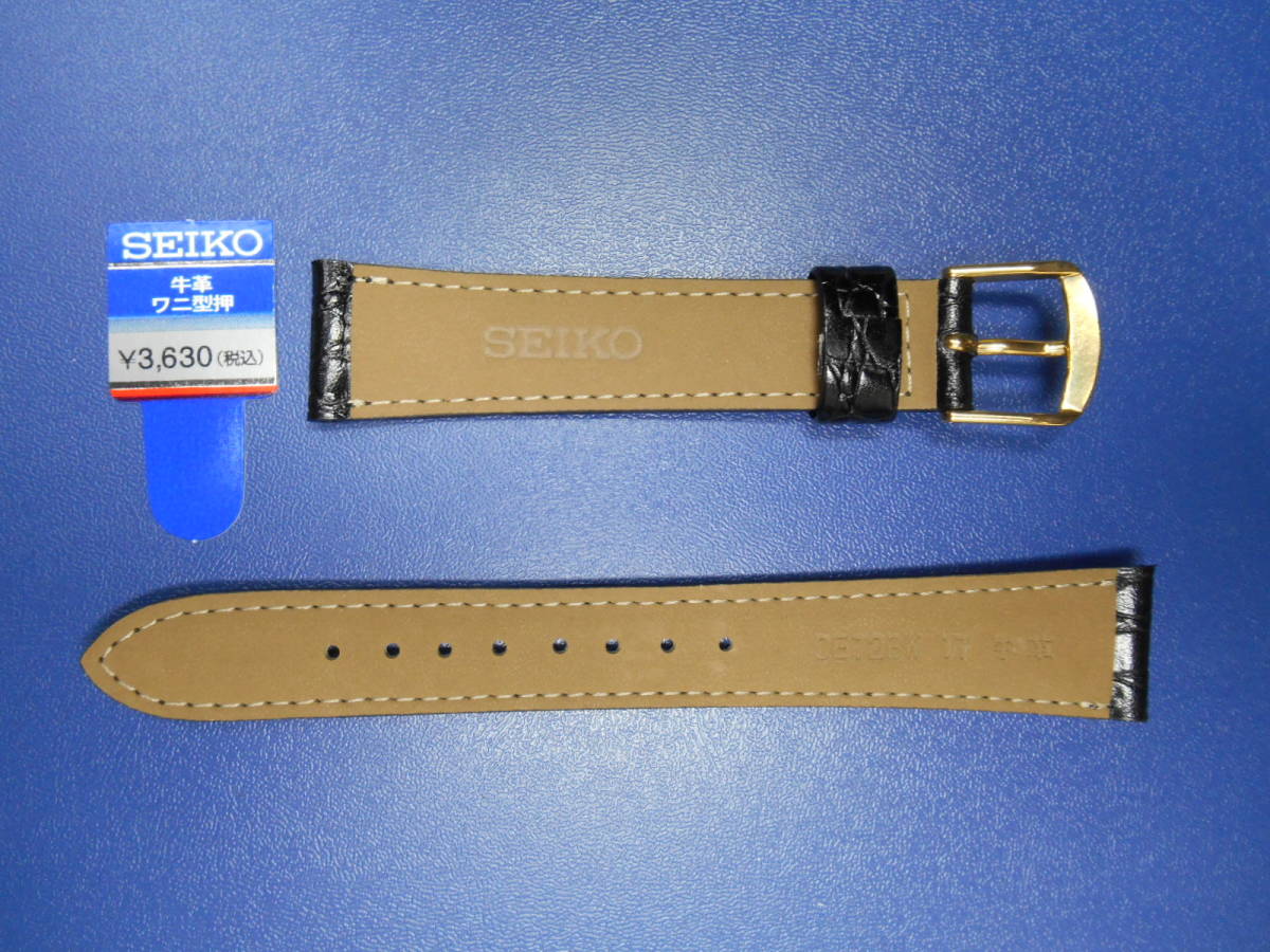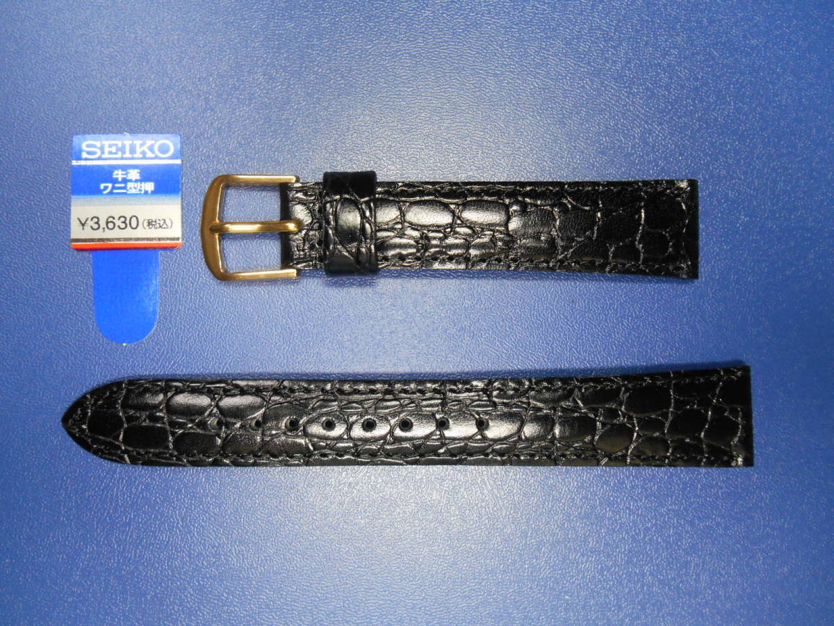 SEIKO 新品未使用 牛革ワニ型押し17ミリ 黒 DE72