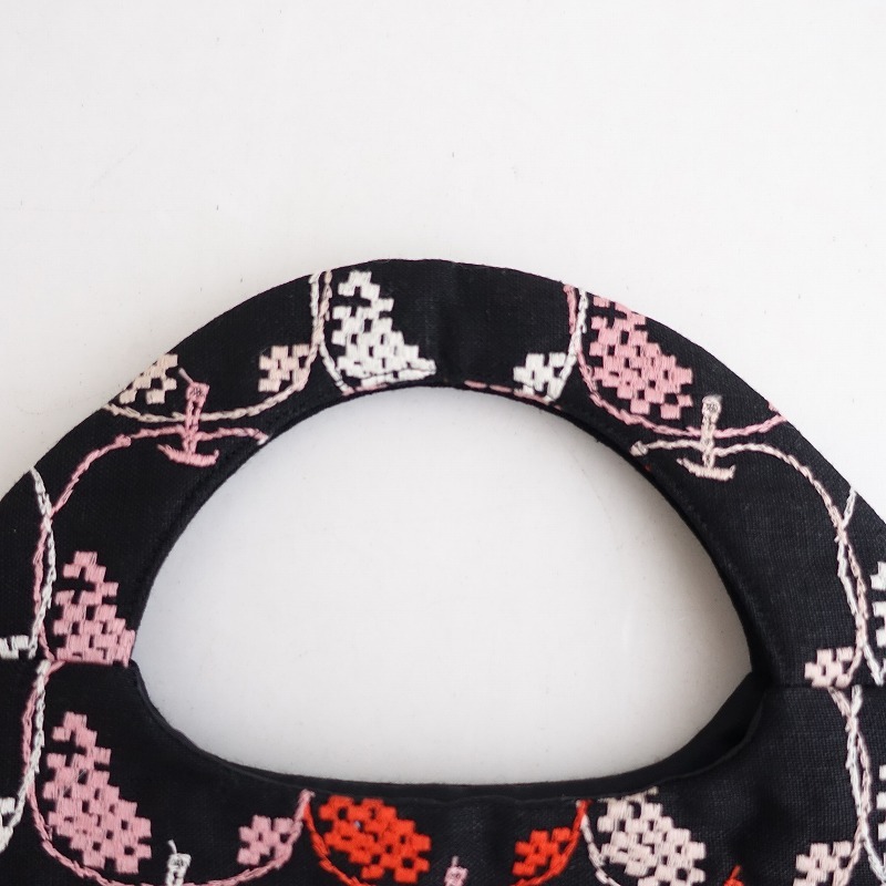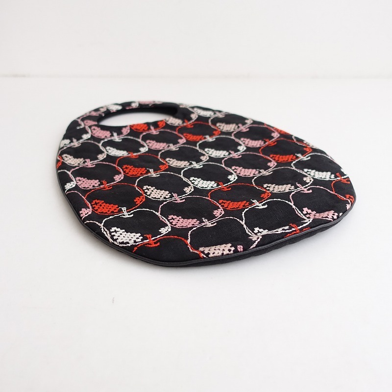 mina perhonenのmemory dream エッグバッグです。 カラーは表はブラックベースにホワイトでの「choucho」のテキスタイル、裏はブラック×レッド×ライトピンクなどで「mela」のテキスタイルが施されたデザインです。サイド周りはブラックの合皮でパイピングが施されており、内側はブラックの光沢のある裏地が付いております。 定番で人気の高いegg bag、卵型のコロンとした雰囲気とすてきなテキスタイルがコーディネートのアクセントになります。 |
