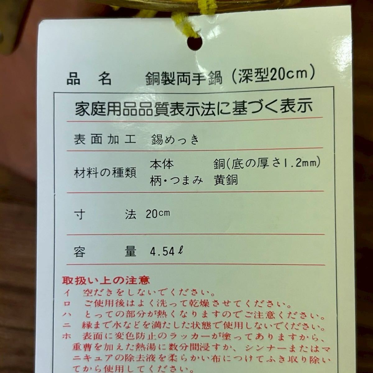 カパーメイト 銅製 両手鍋 なべ 深型20cm カッパー 銅 カッパーメイト