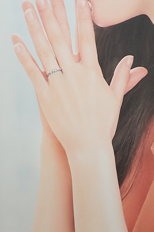 コメントダイヤモンドが眩く輝く、ハーフエタニティのピンキーリングです。シンプルなデザインなので、様々なスタイルに合わせやすいエレガントなお品です。