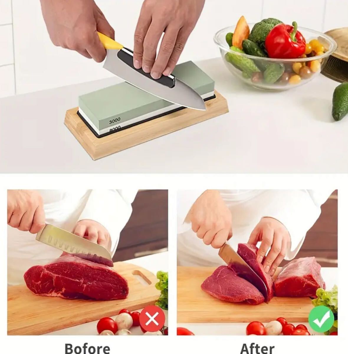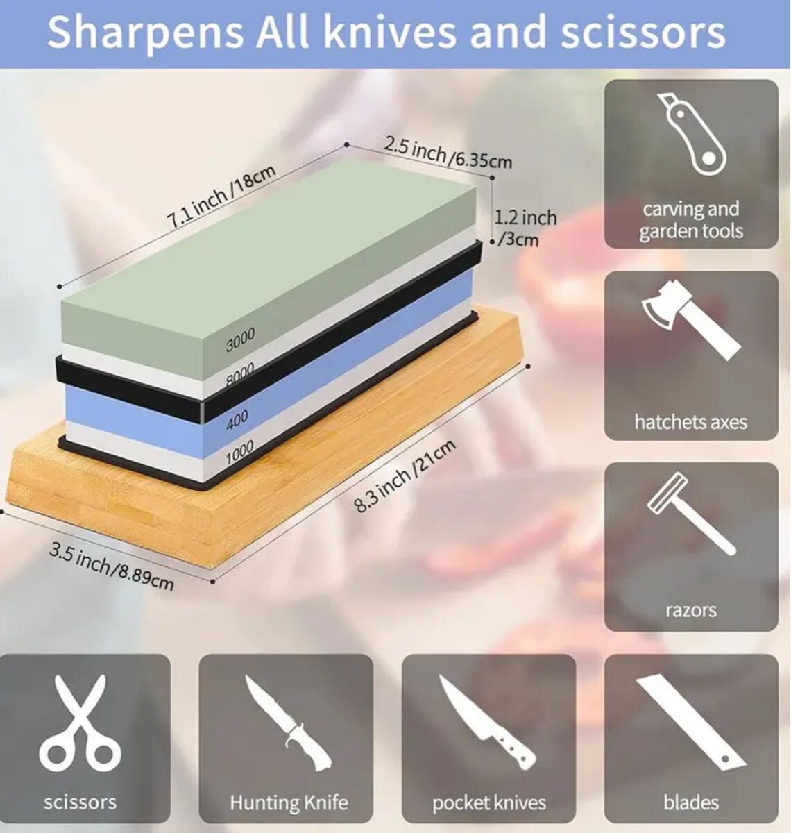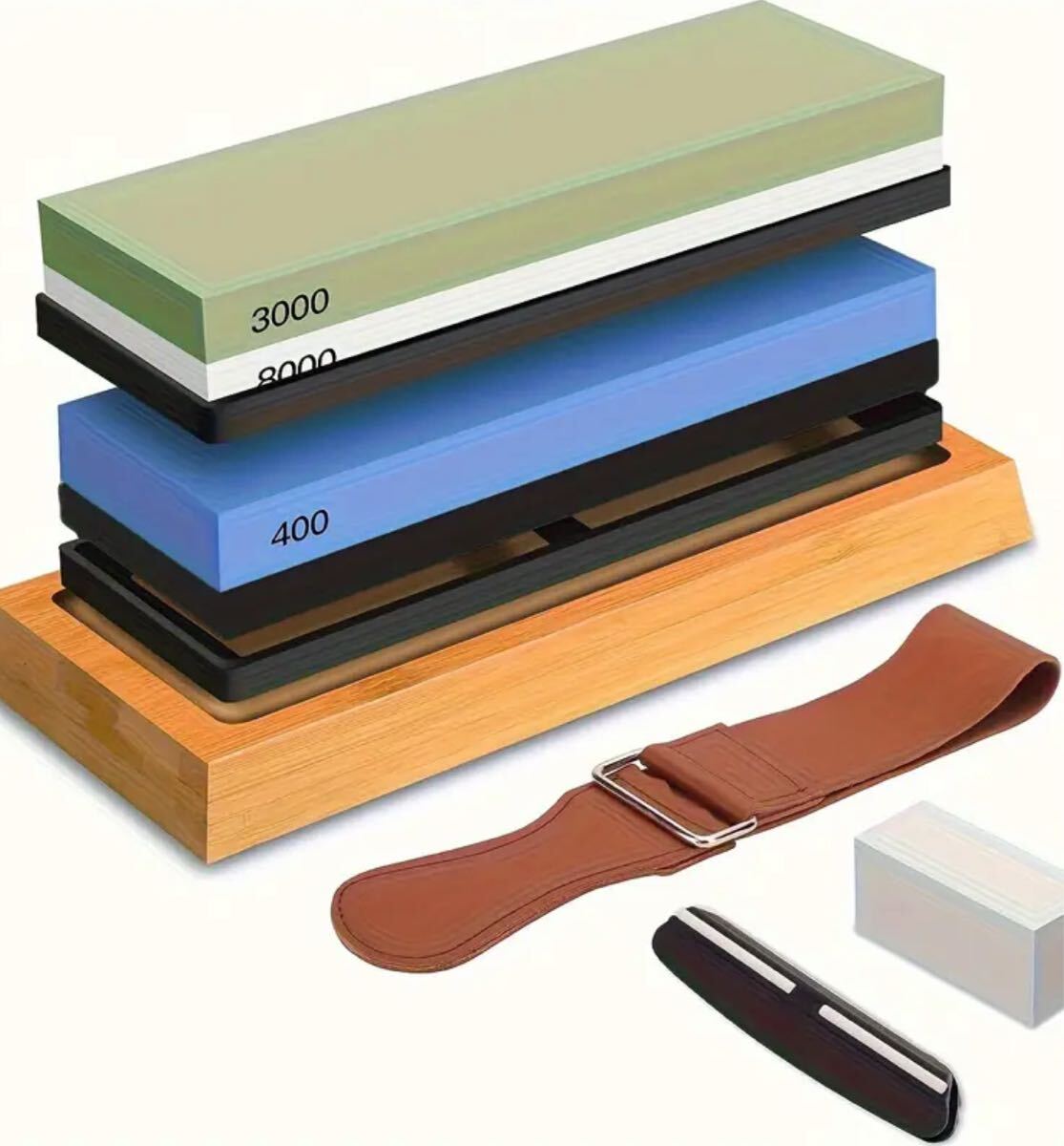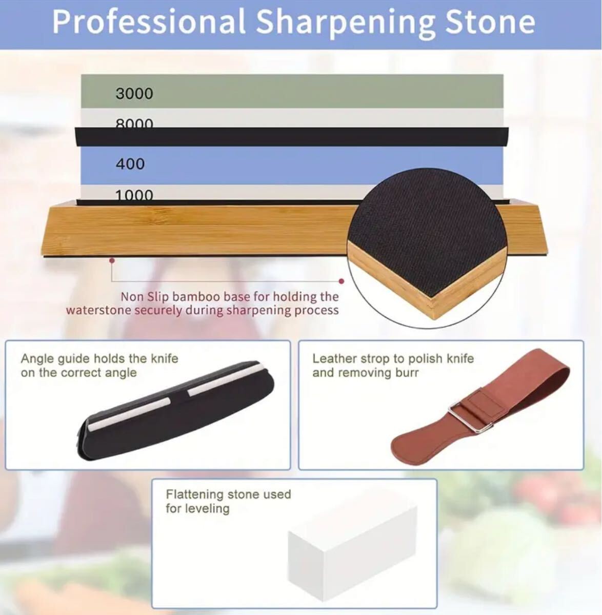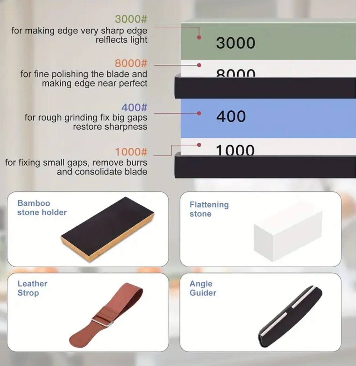 砥石セット サイドグリット400/1000・3000/8000 プレミアム砥石ナイフシャープナー 竹製ベース付き 角度ガイド フェイクレザーストロップ 平坦化石
