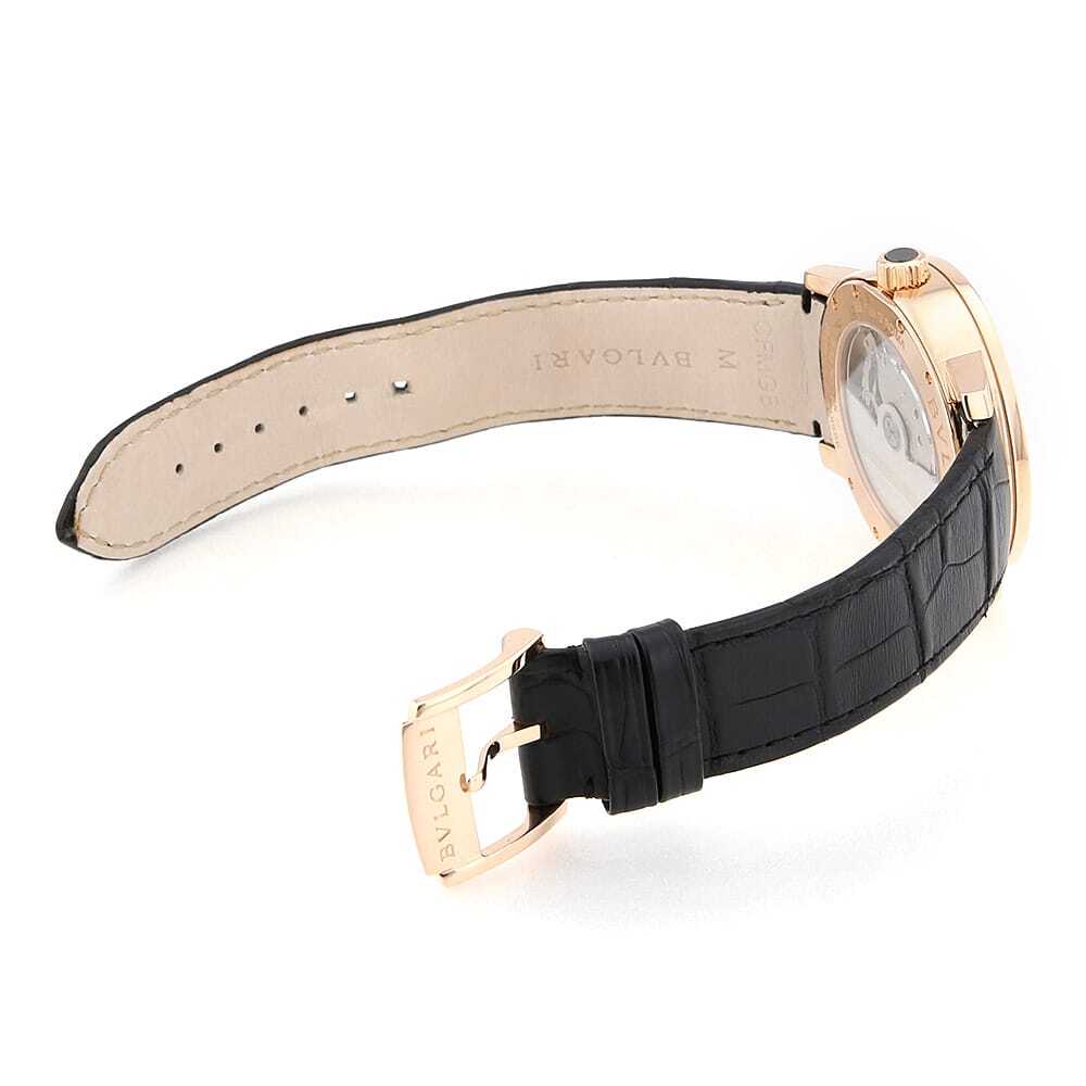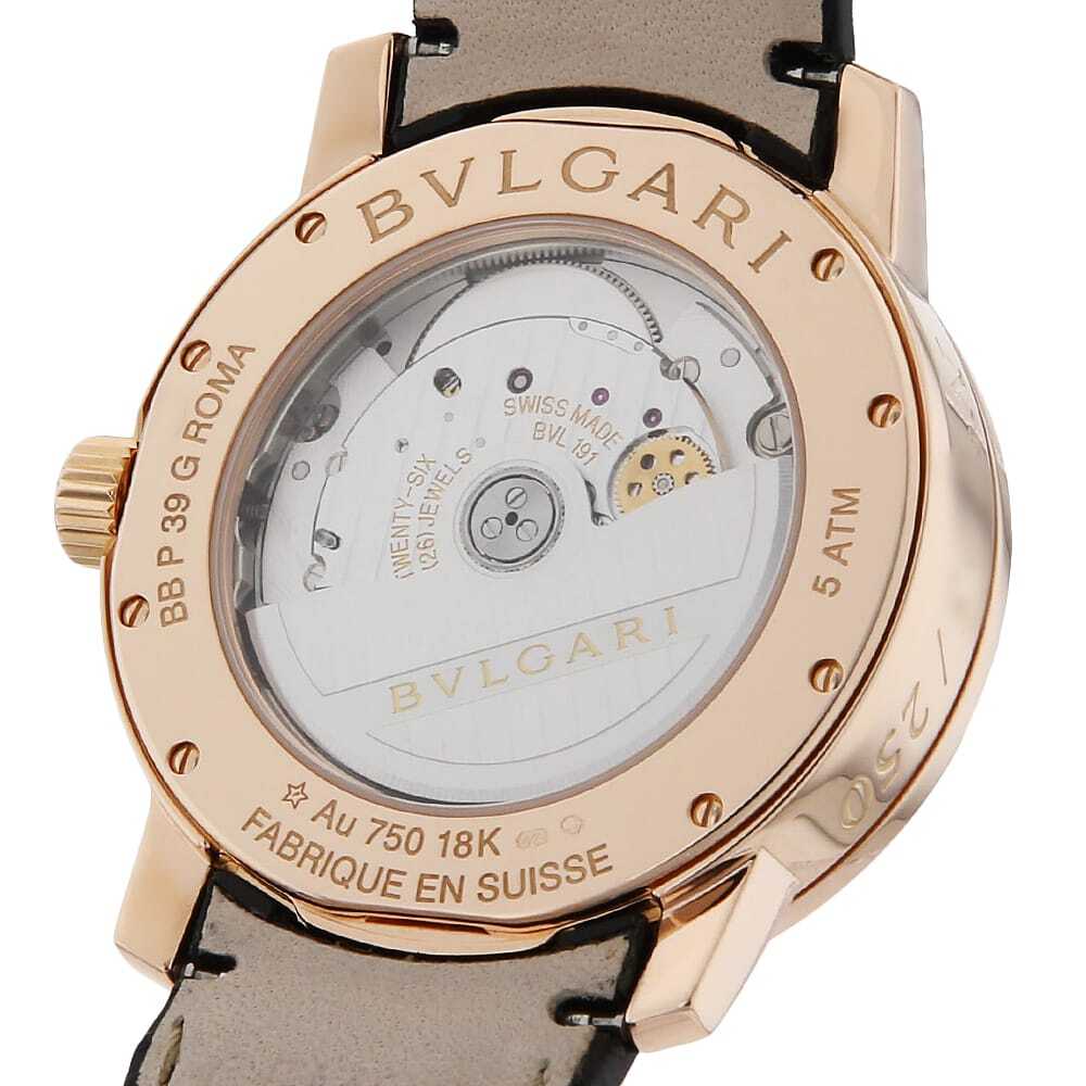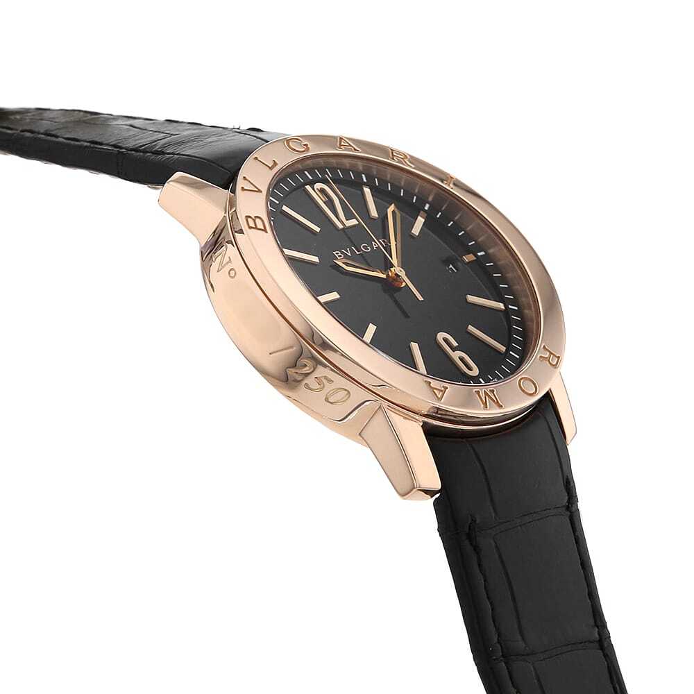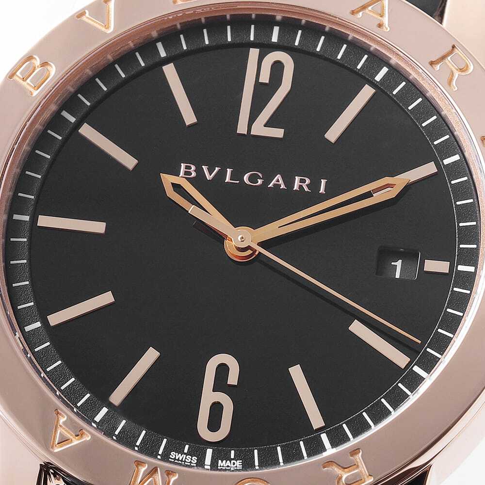 | モデル情報 | 直営店限定で250本だけ販売されたレアモデルを入荷致しました。ブルガリブルガリ登場以前の1975年に販売されていたモデルの復刻版になります。39mmのピンクゴールド製ケースに自動巻きBVL.191を搭載。ピンクゴールドカラーとブラックダイアルのコントラストは華やかで高級感のあるフェイスです。9時側のケースサイドにはNo***/250のナンバリングが刻印されています。パワーリザーブ42時間。5気圧防水。 |