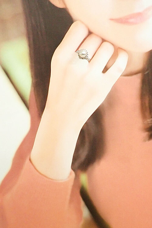 コメントタサキの、まろやかな輝きが上品なアコヤパールのリングです。パールを取り巻くダイヤモンドがきらきらと煌めき、お手元に華やかな印象を添えてくれます。