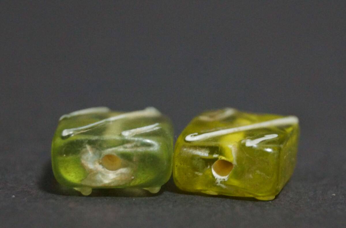 【寂】ガラス製 トンボ とんぼ玉(2点) 根付 緒締玉 提げ物 装飾品 長さ1.5cm☆時代物☆s70801
