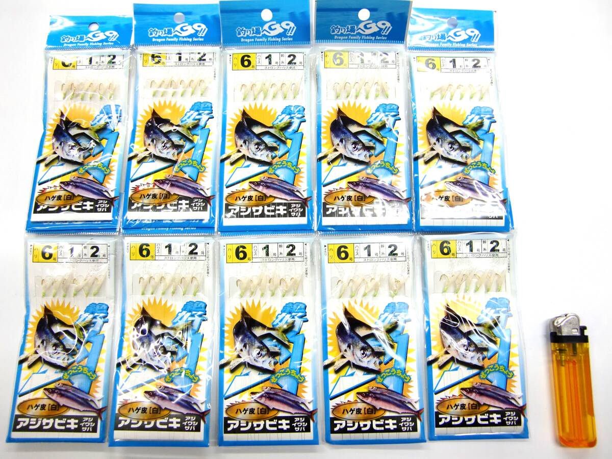 | 新品 アジサビキ 6号 ハゲ皮白10枚セット | |