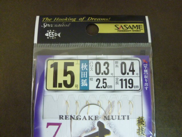・号 数 1.5号 ・ハリス 0.3号 ・幹 糸 0.4号 ・ 枝 2.5cm ・全 長 119cm | |