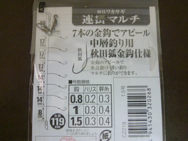 | ○AP-3884 SASAME ささめ針 秘技ワカサギ連掛マルチ 7本鈎 1.5号 CZ218 ※新品 | |