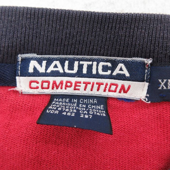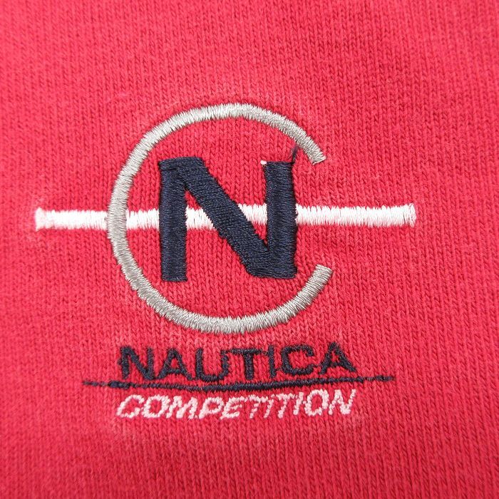 【商品名】 XL★古着 ノーティカ 長袖 ブランド Tシャツ メンズ 00年代 00s ワンポイントロゴ コンペティション 大きいサイズ コットン Vネック 赤