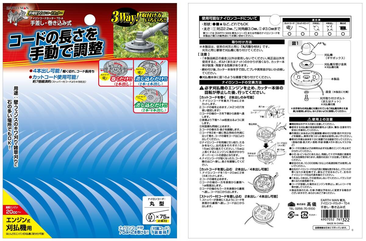 高儀(Takagi) EARTH MAN 斬丸 草刈用 ナイロンコードカッター 手差し・巻き込み TD-A(No.1)