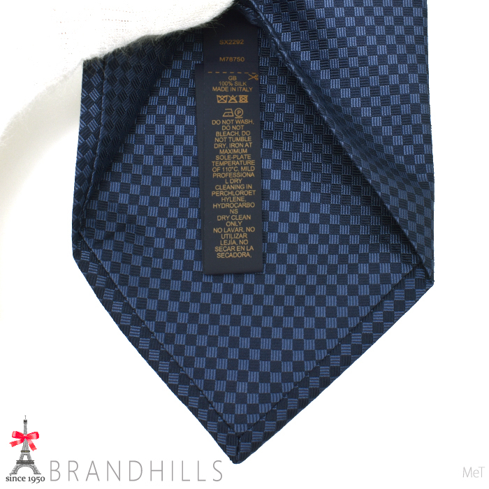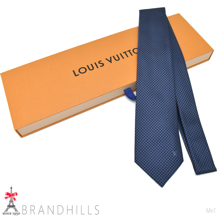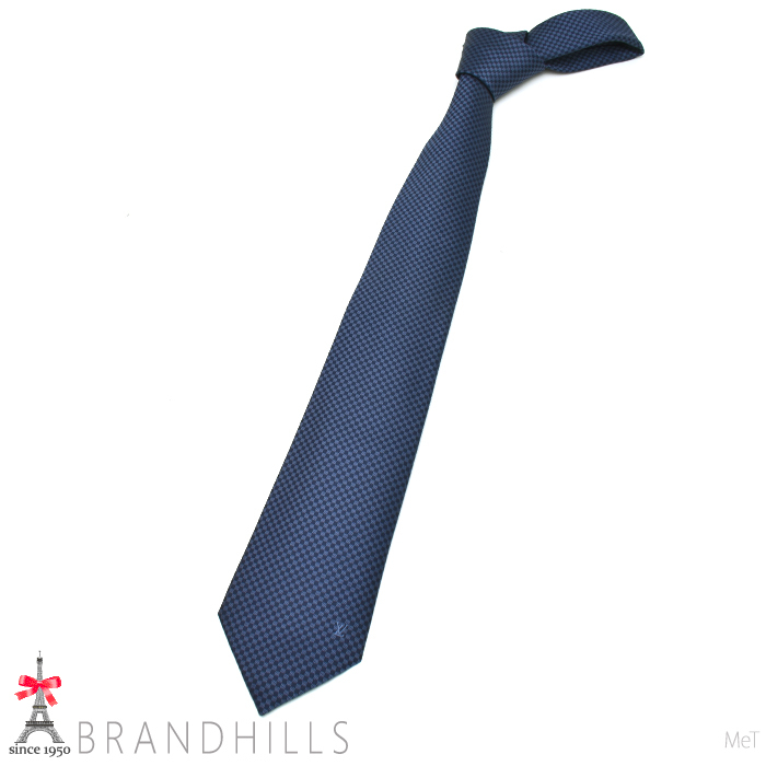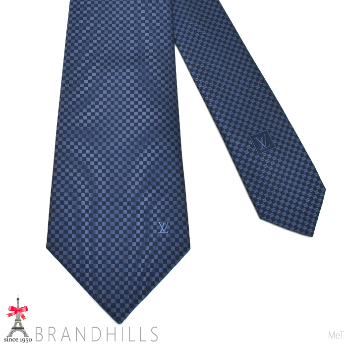 ルイヴィトン ネクタイ マイクロダミエ シルク100% マリーヌ 剣先幅8cm M78750 LOUIS VUITTON 未使用品