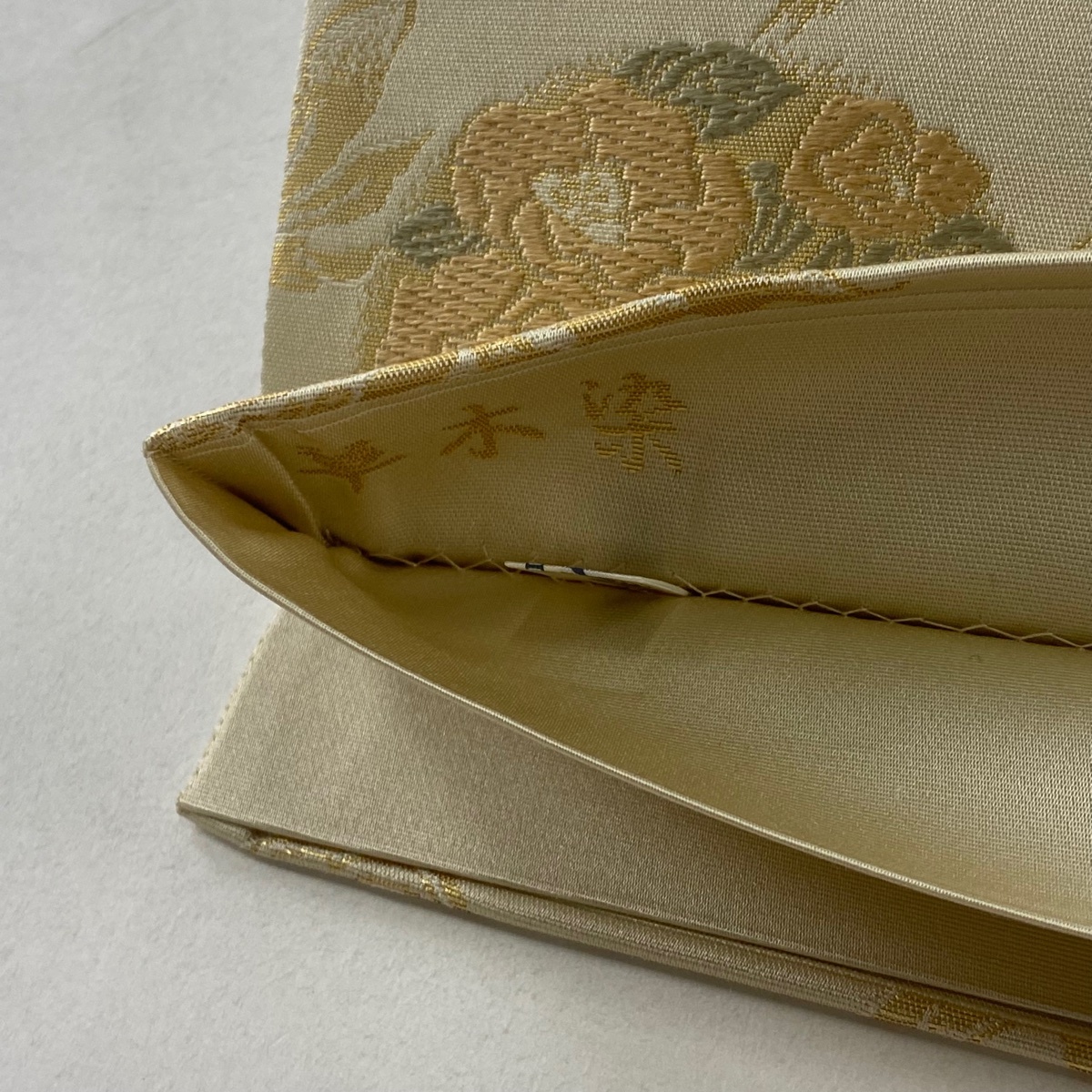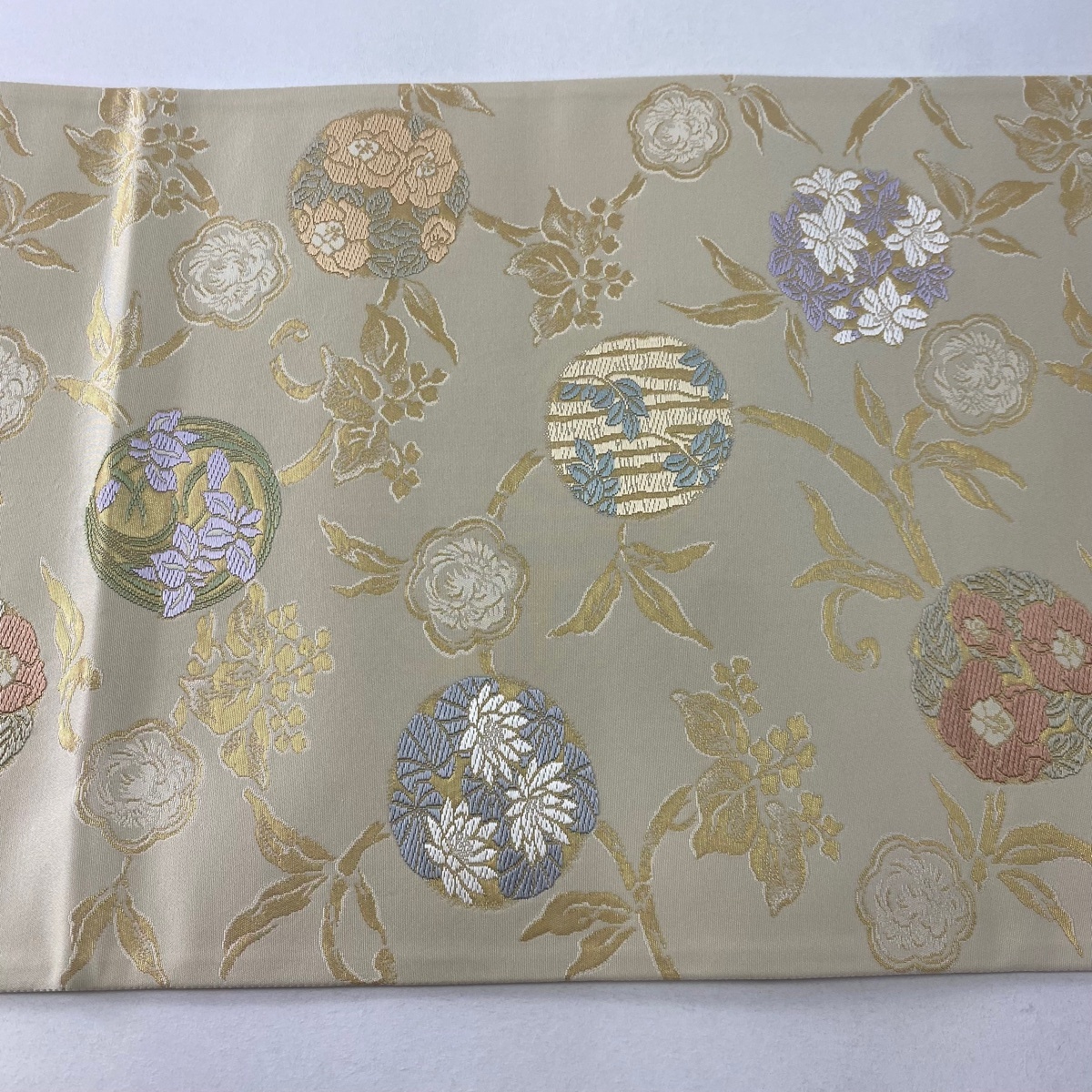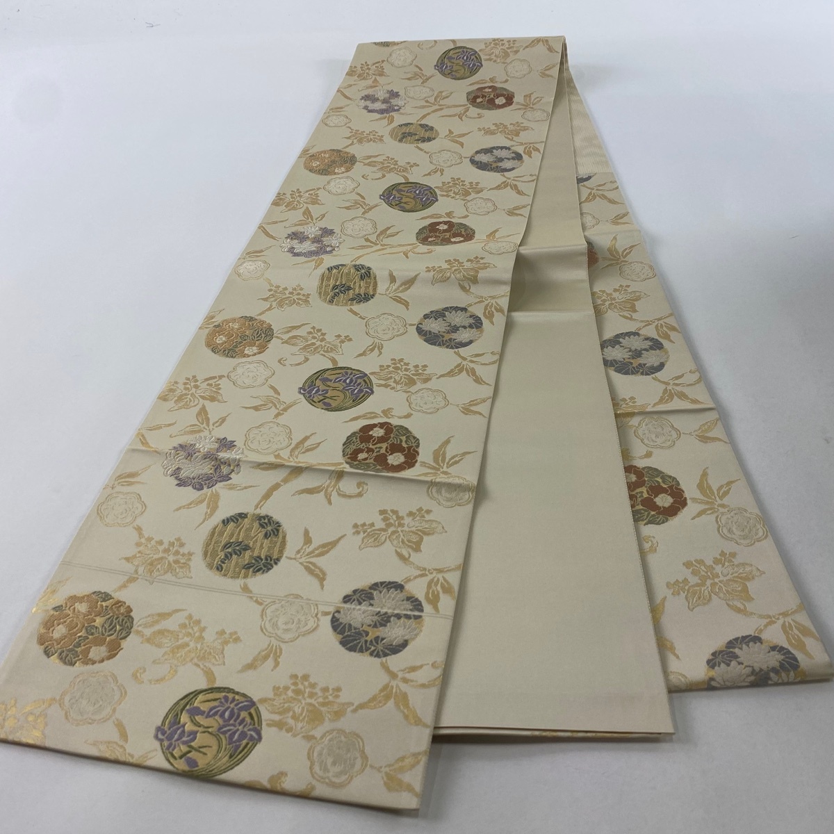 | 袋帯 美品 名品 草木染 花丸文 草花 箔 ベージュ 六通 正絹 【中古】 |