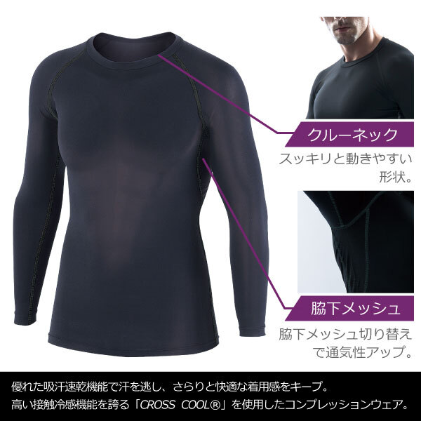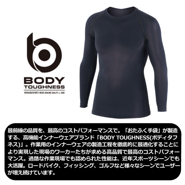 おたふく手袋 BODY TOUGHNESS(ボディータフネス)【JW-623】BT冷感・消臭 クールネック長袖シャツ ■Mサイズ■ブラック ネコポス発送