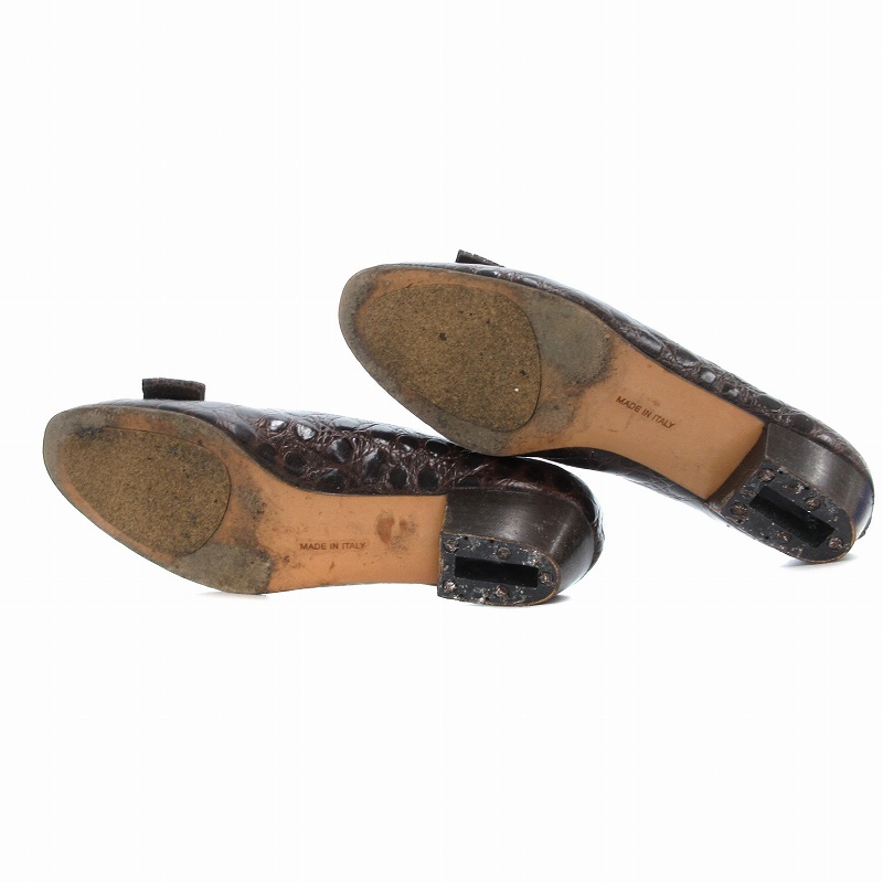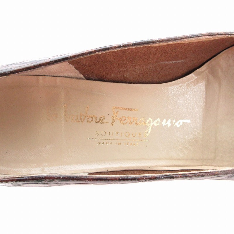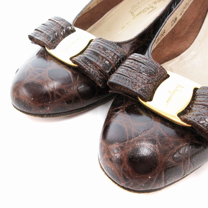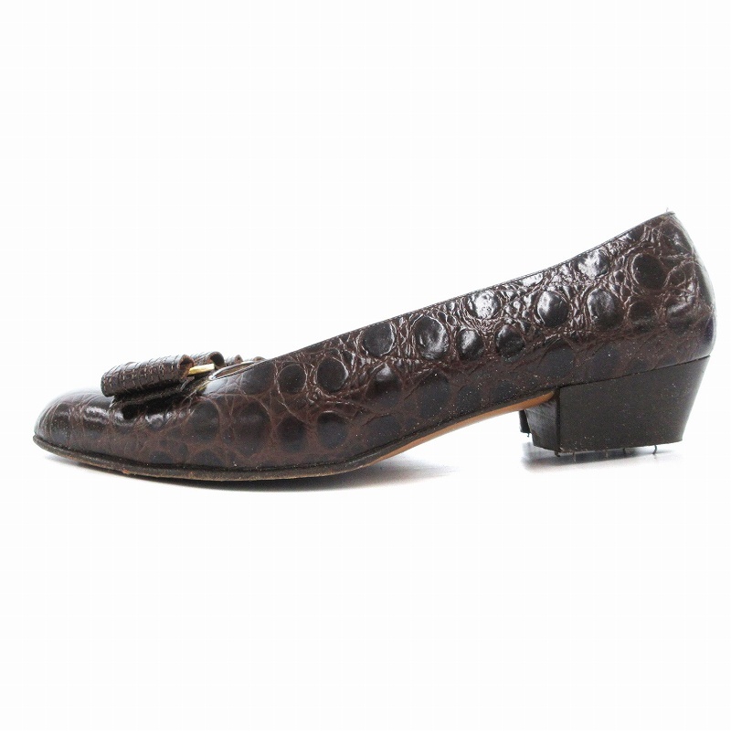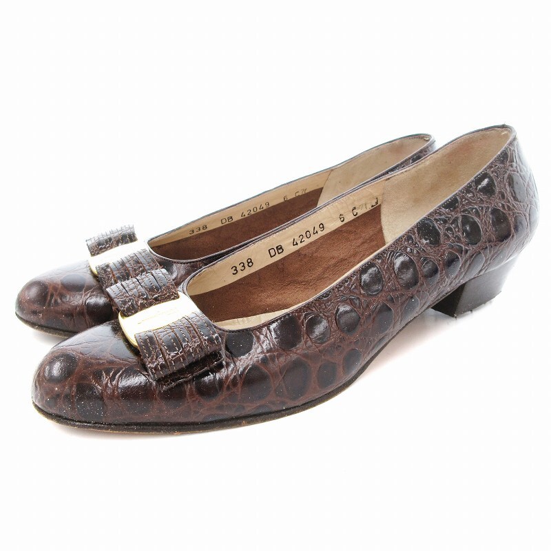 サルヴァトーレフェラガモ パンプス シューズ ヴァラ クロコ型押し ローヒール 6 23.5cm 茶 ブラウン ジャンク /AE ■GY99
