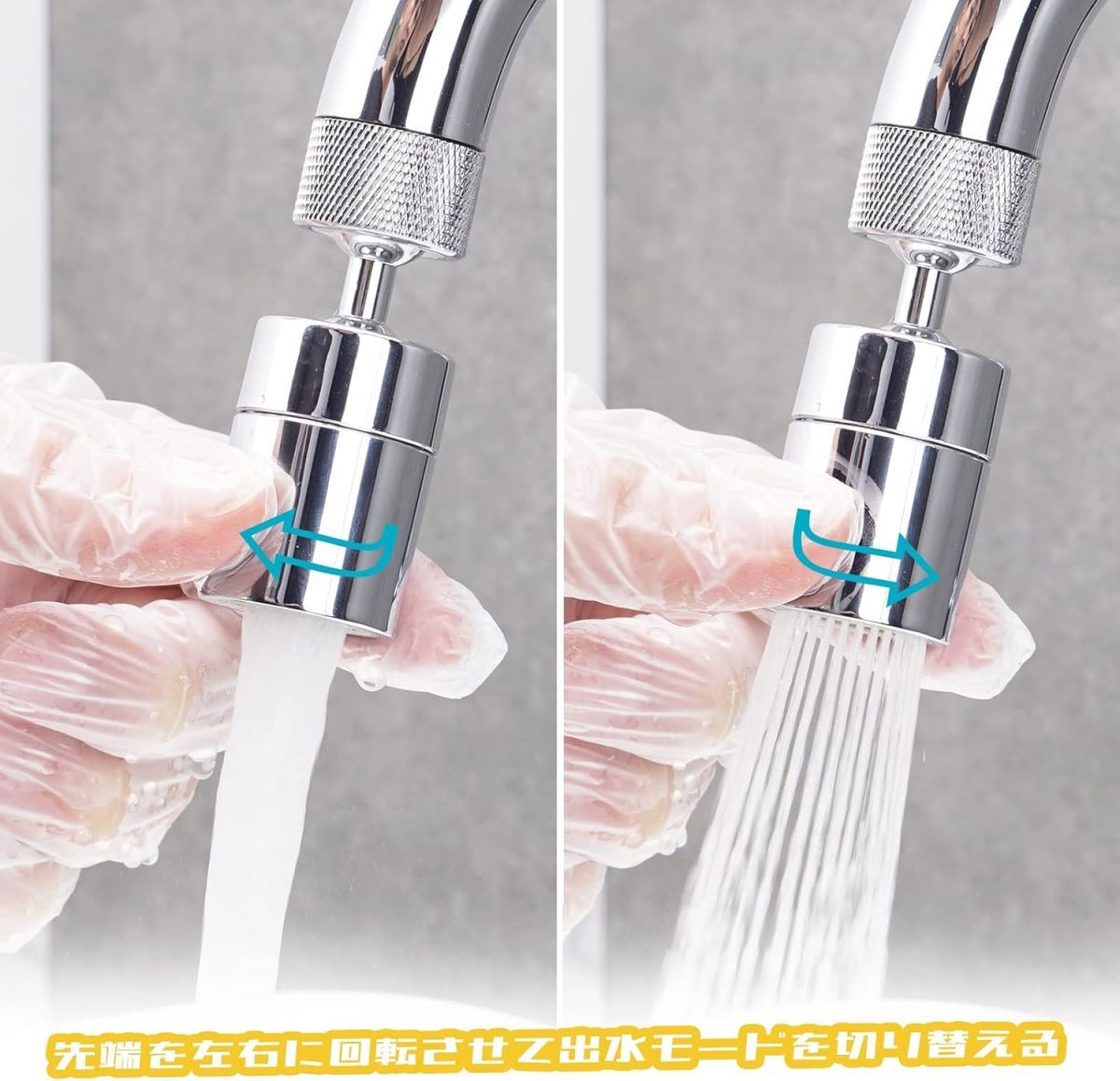 「120度首振り360度回転」ヘッドの向きが変えられるよって、水流の方向が自由に変換できるので、洗い物など楽になりました。